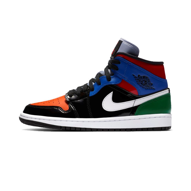 Air Jordan1mid AJ1 Цветная сшивая патентная кожаная кожа белая оранжевая зеленая женщина CV5276-001