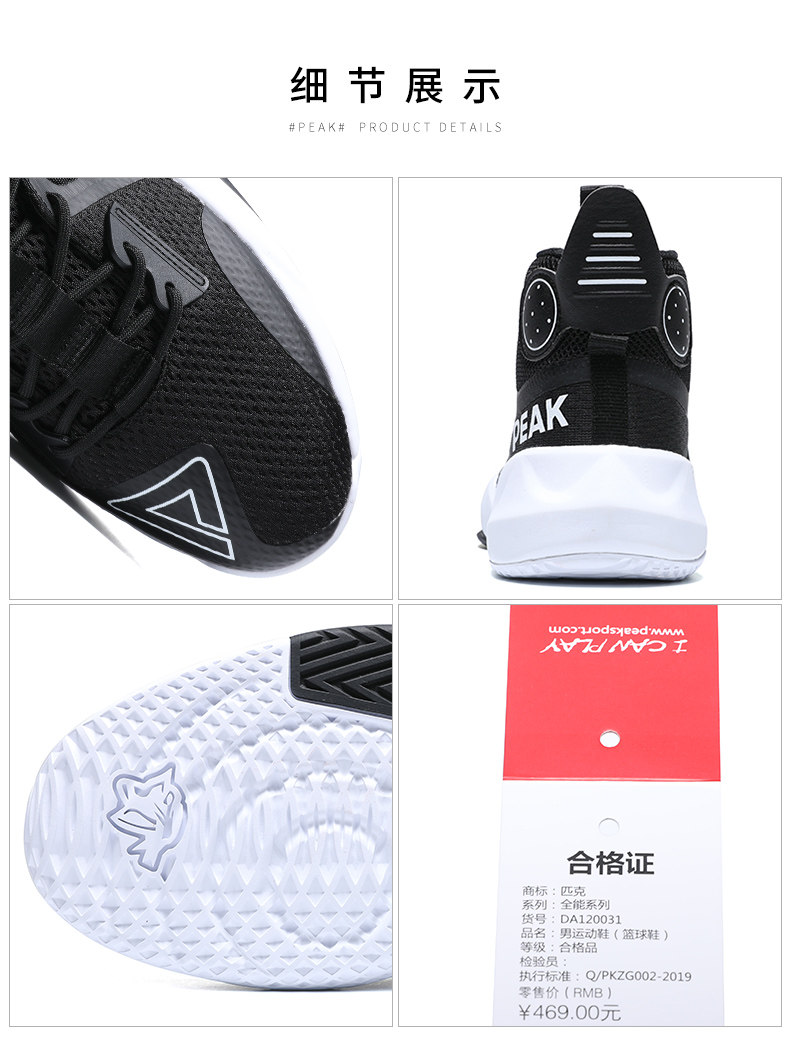 Пик баскетбольной обувь мужская толстое дно увеличивает дышащие, не сосланные, устойчивые к истиранию классическая модная универсальная спортивная обувь