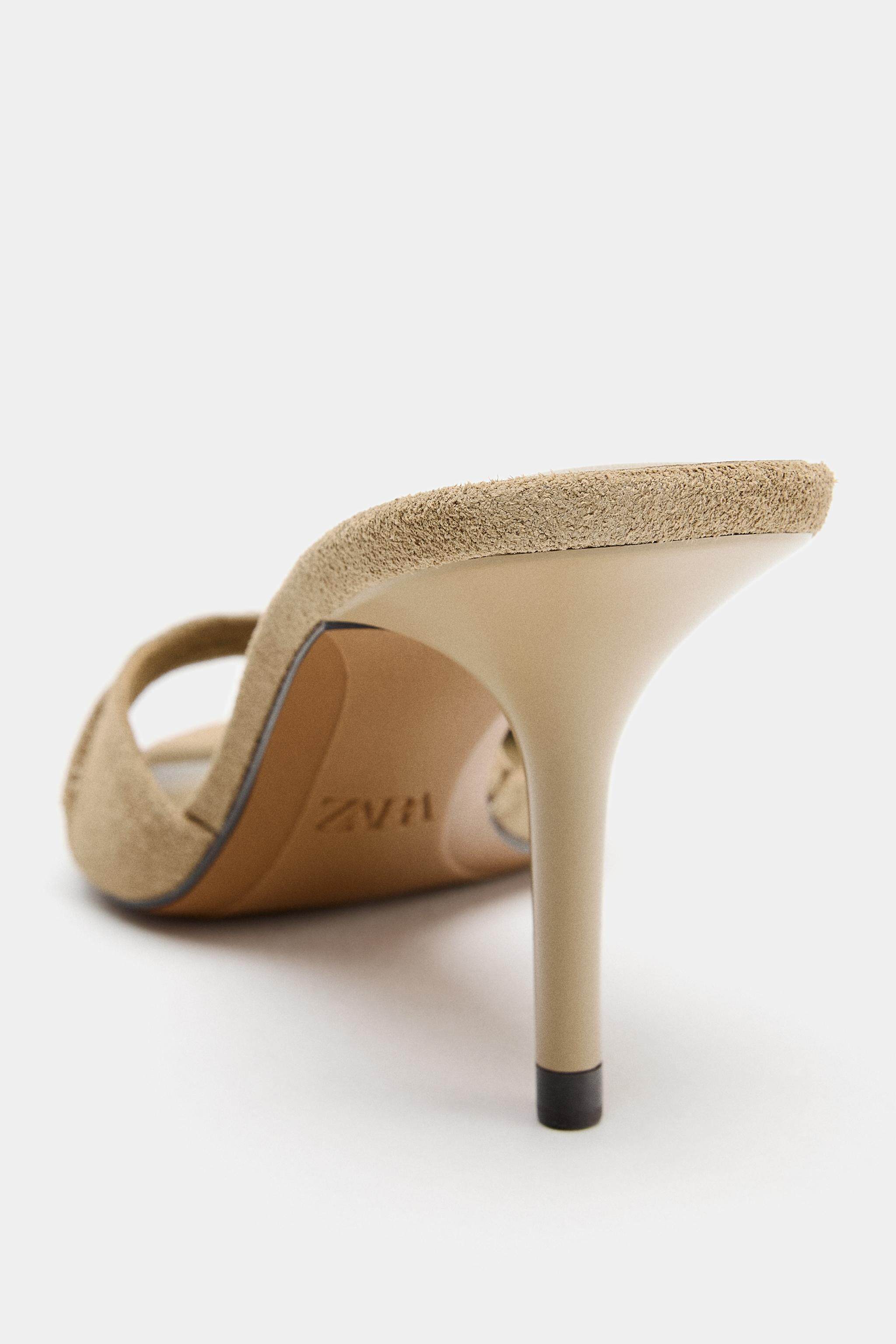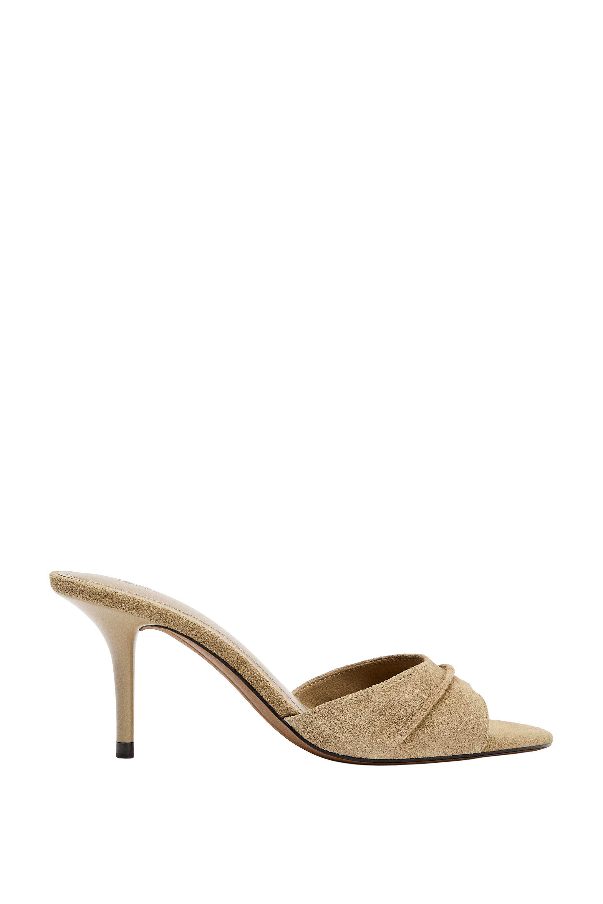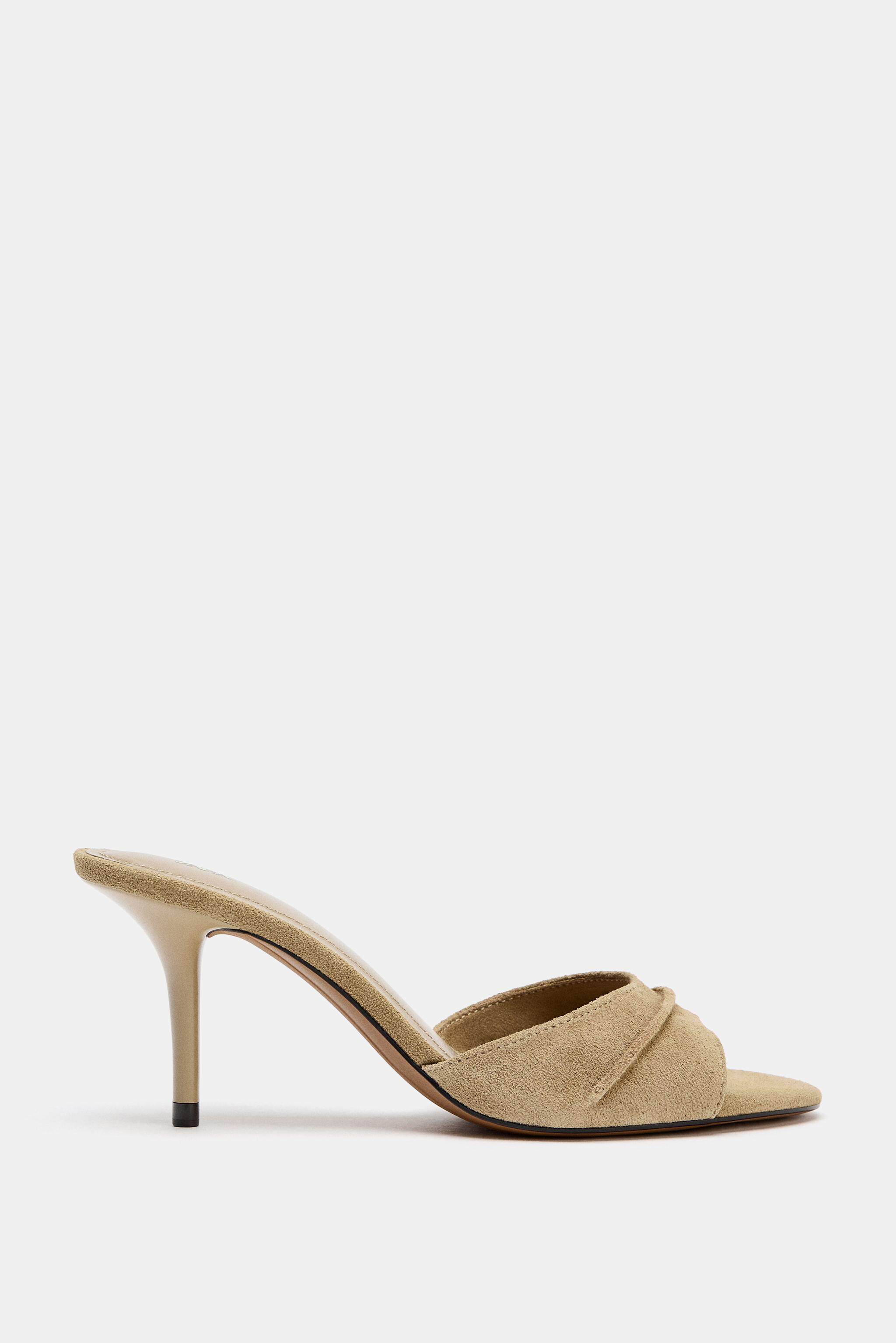 ZARA Новинки весны и лета 2026, женская обувь, кожаные сандалии на высоком каблуке с открытой пяткой в стиле мюлей 2315710 107