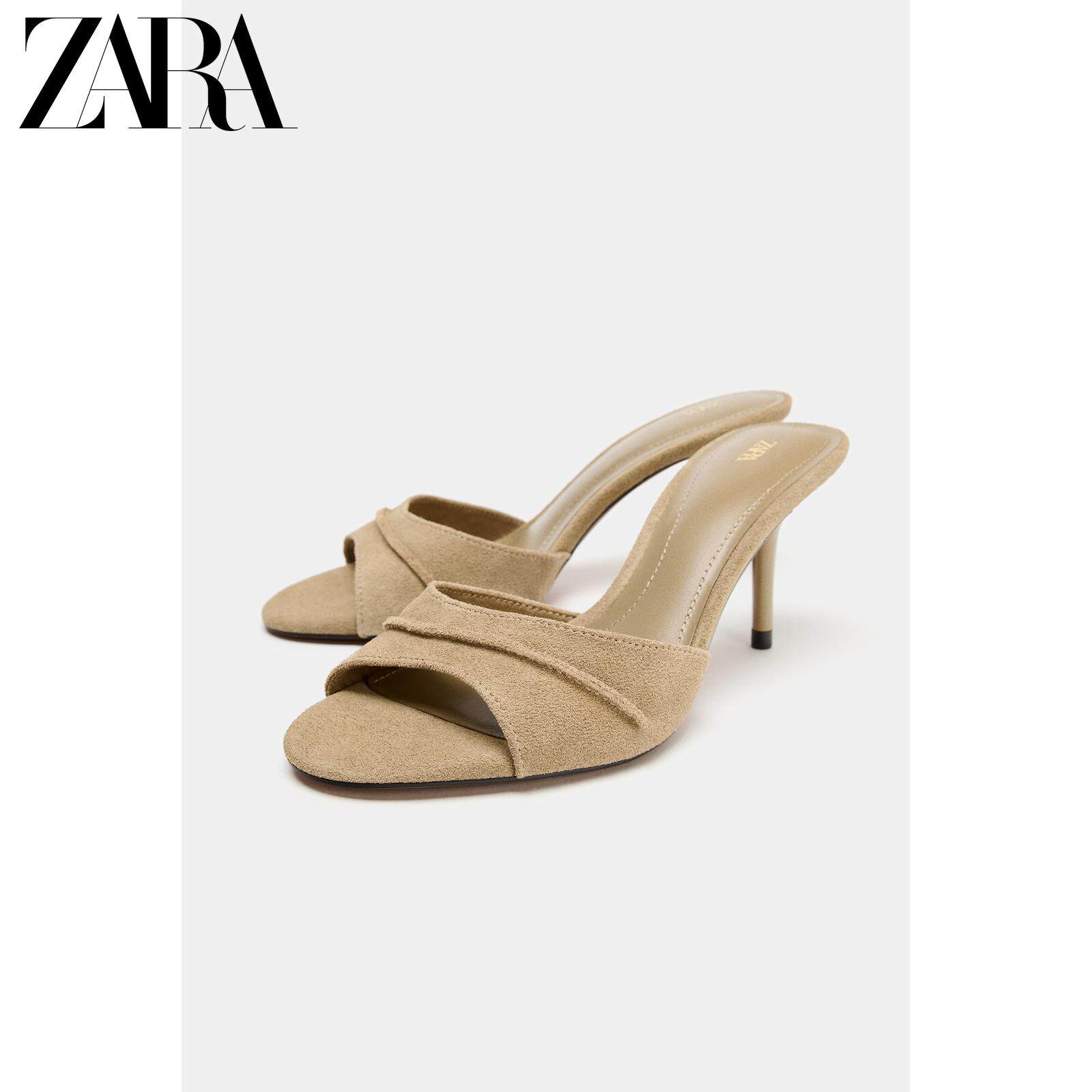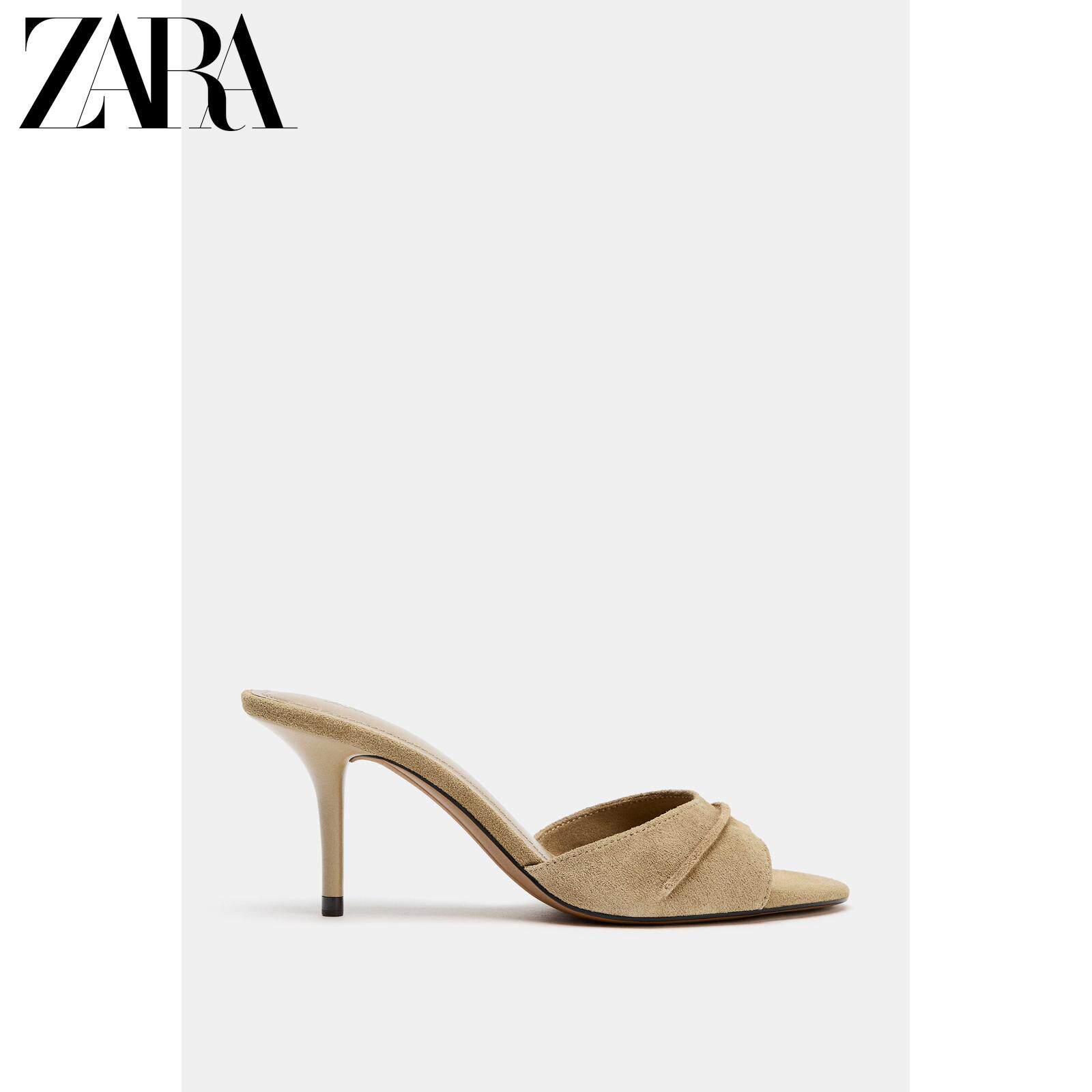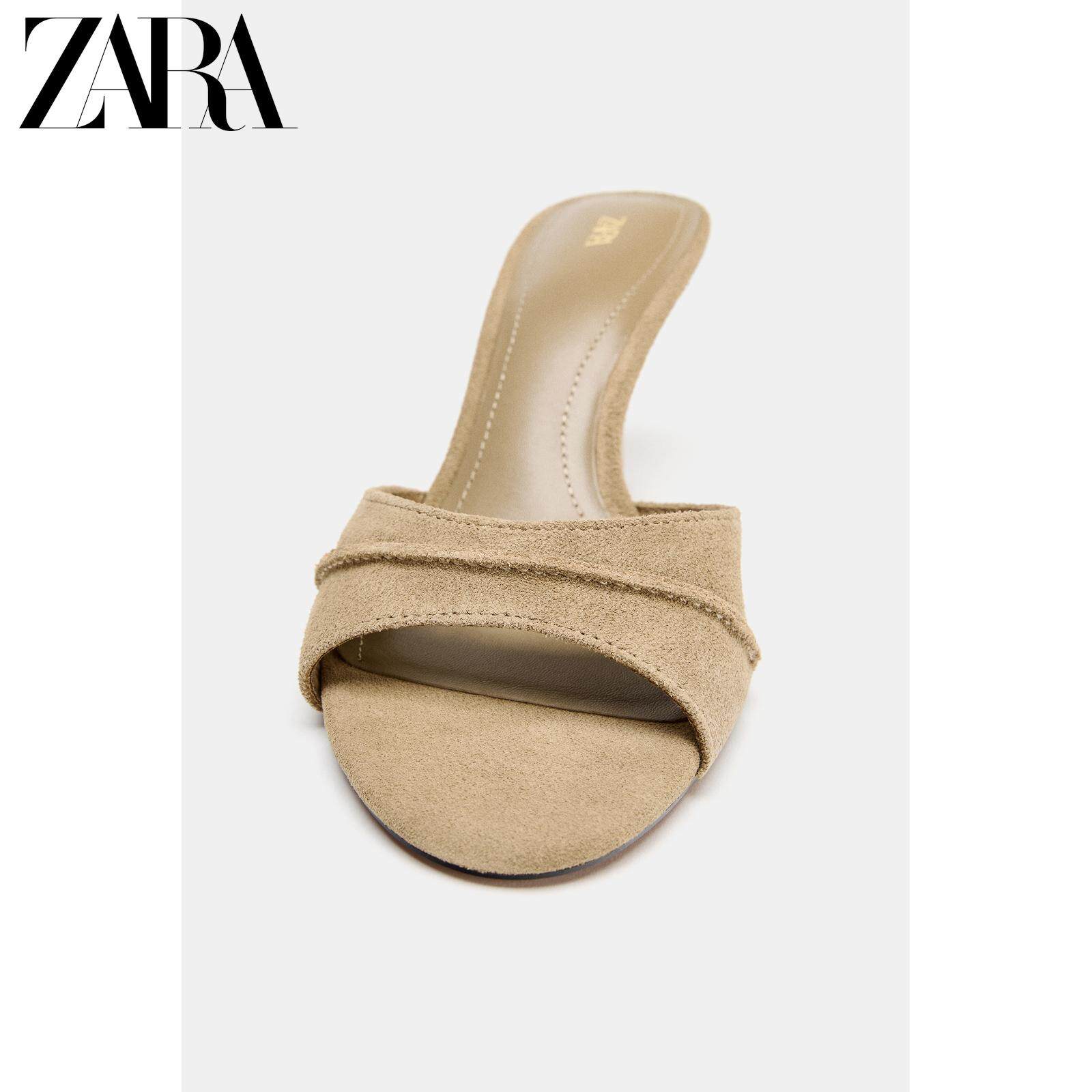 ZARA Новинки весны и лета 2026, женская обувь, кожаные сандалии на высоком каблуке с открытой пяткой в стиле мюлей 2315710 107