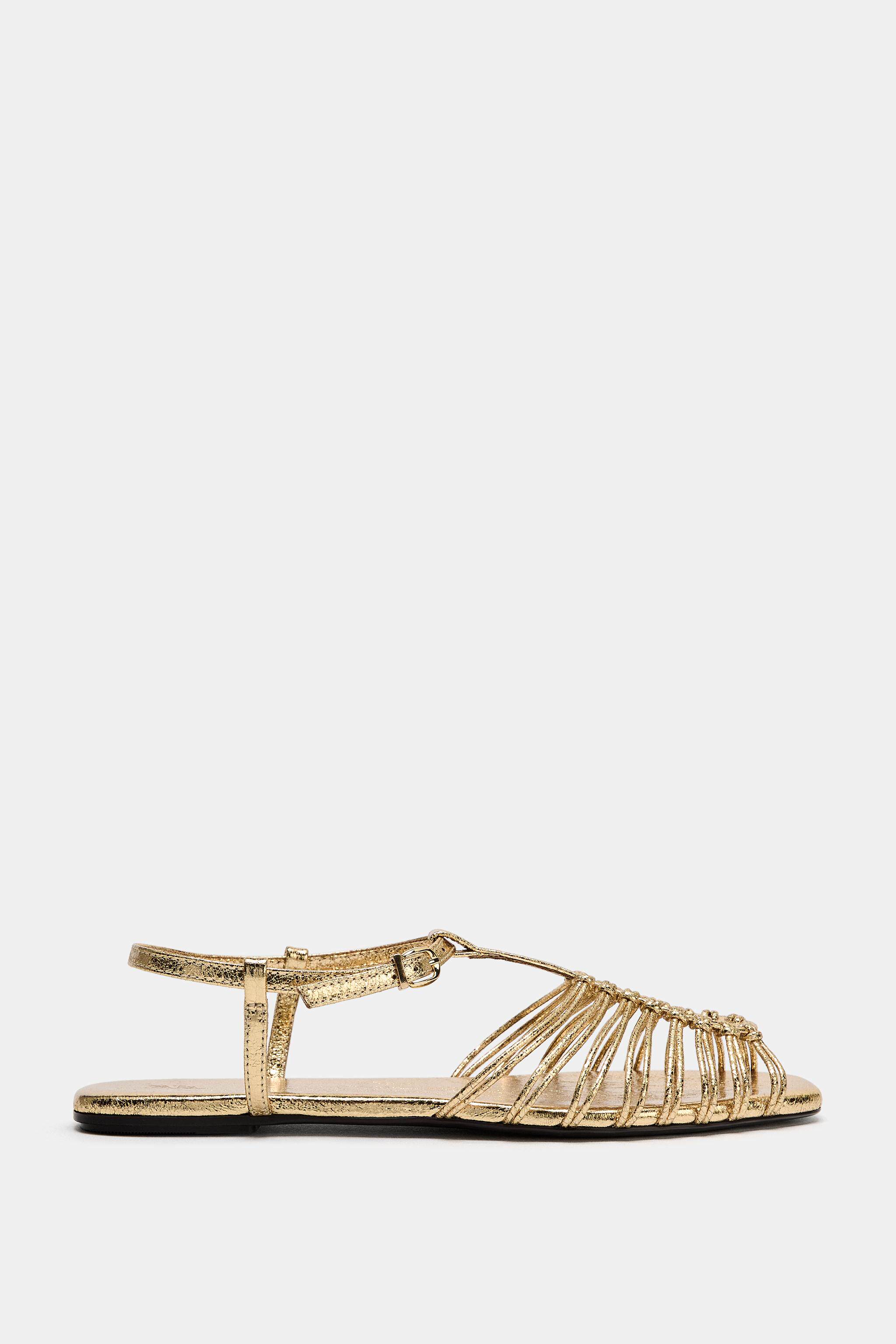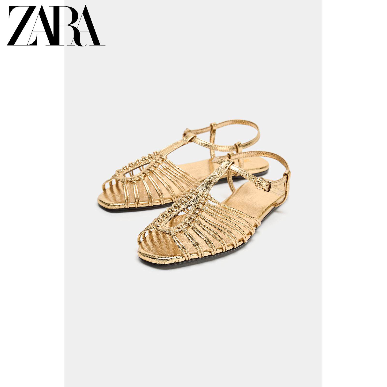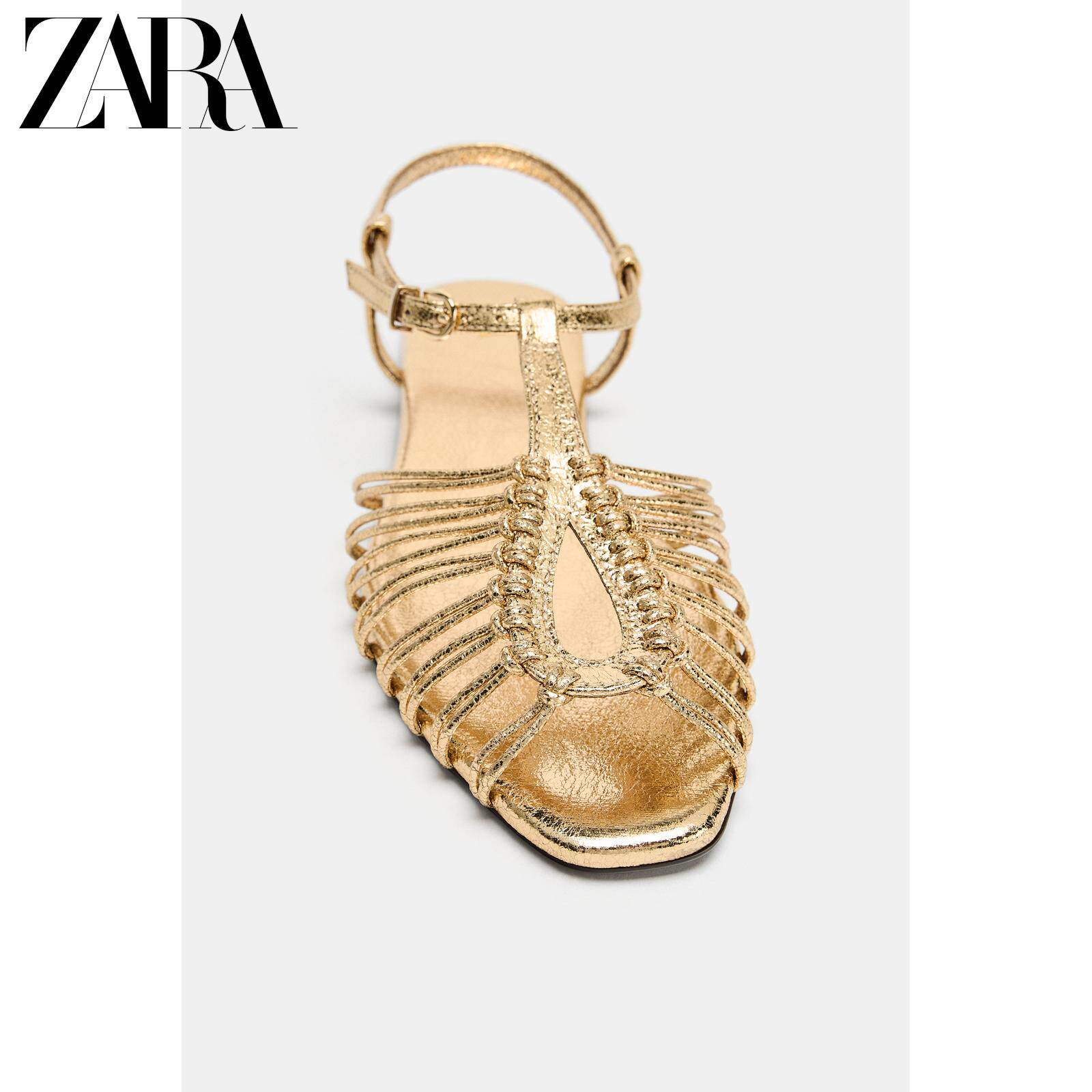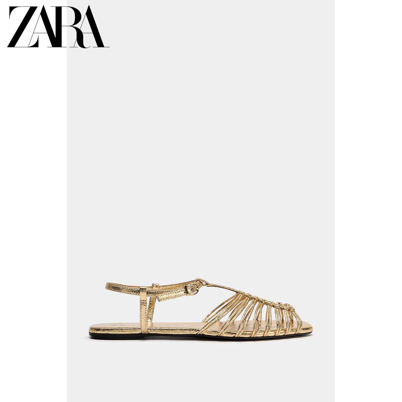 ZARA Новинки весны и лета 2026, женская обувь, сандалии с металлическим ремешком на плоской подошве, 2550710 091