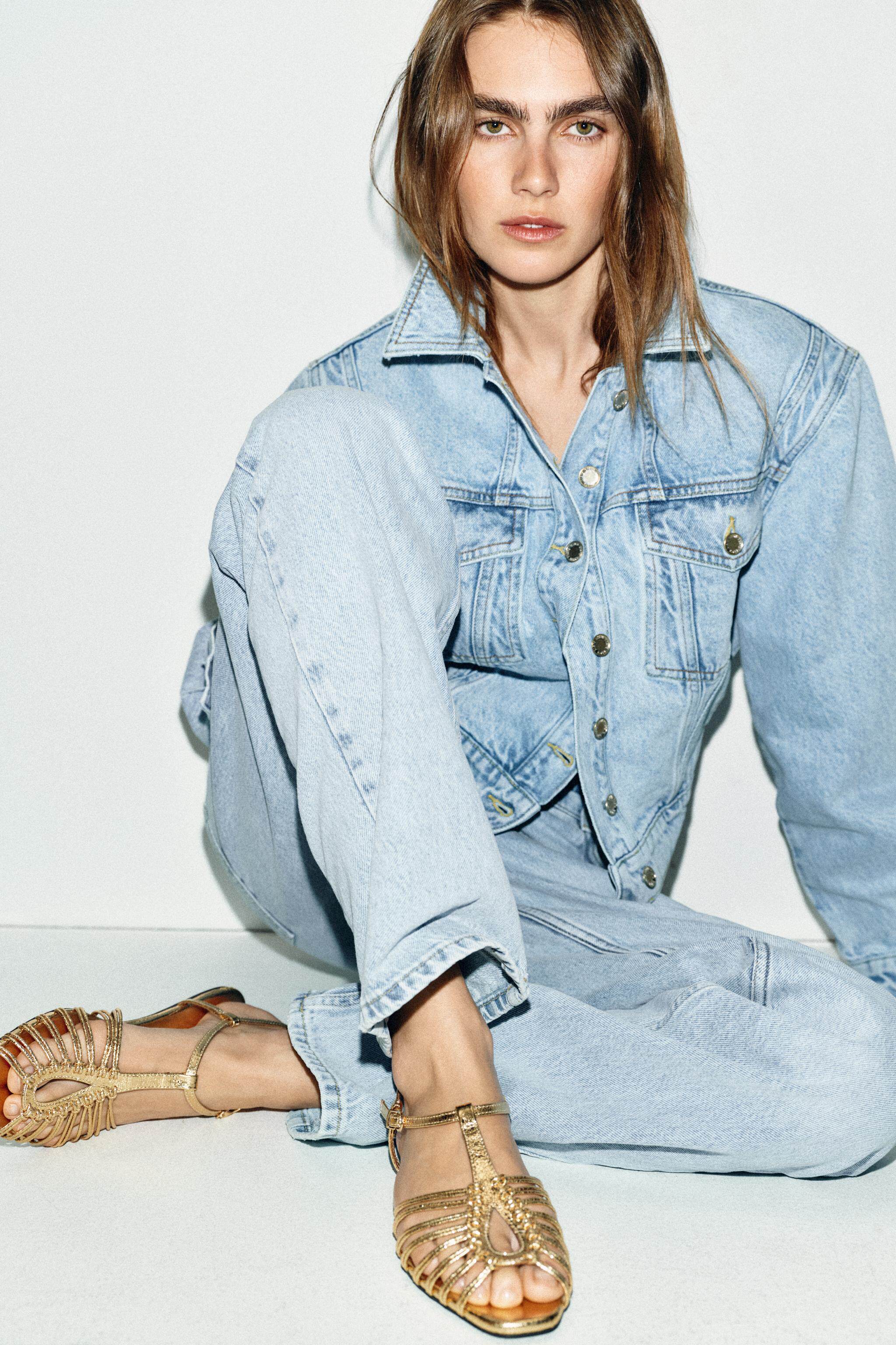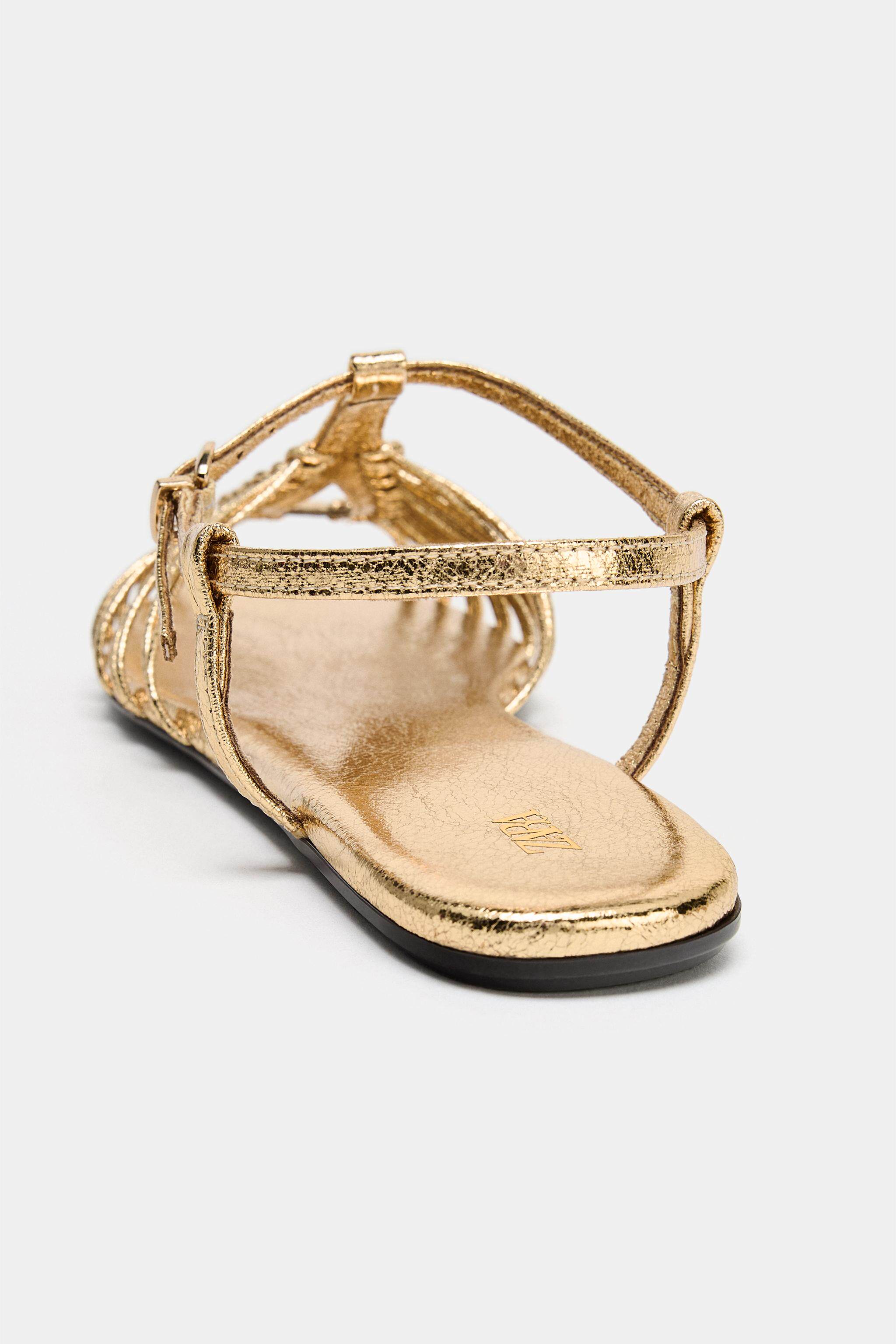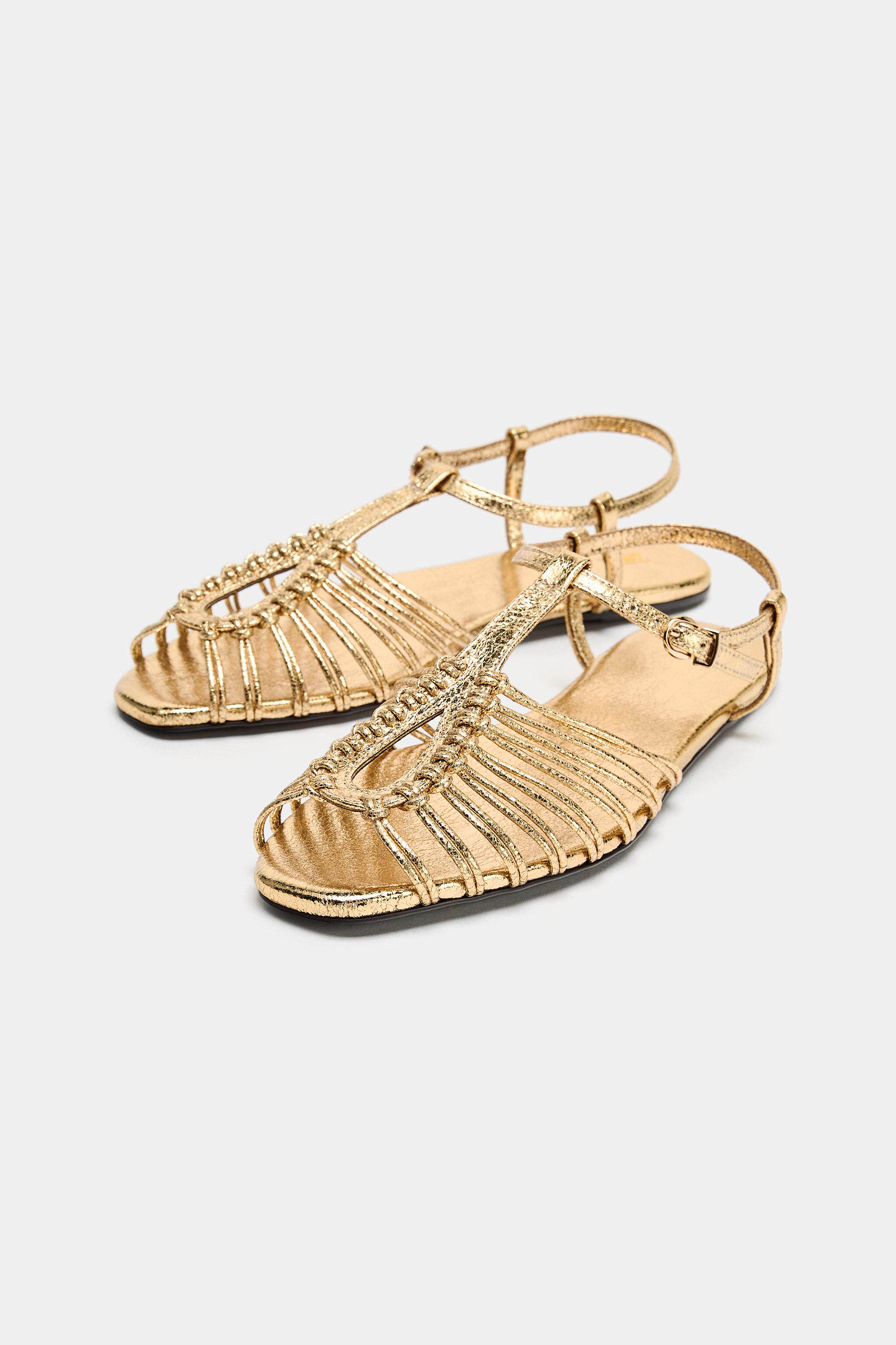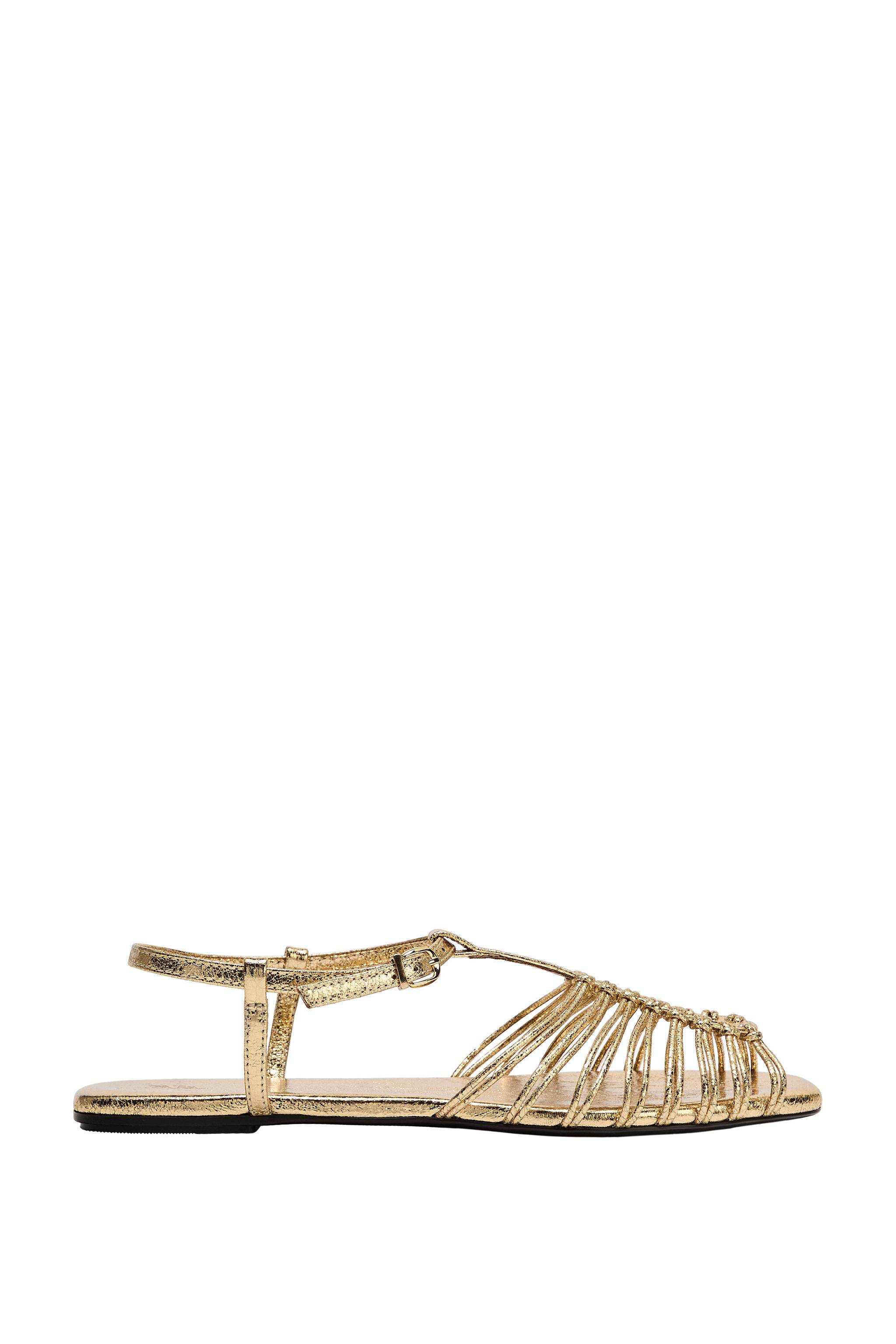 ZARA Новинки весны и лета 2026, женская обувь, сандалии с металлическим ремешком на плоской подошве, 2550710 091