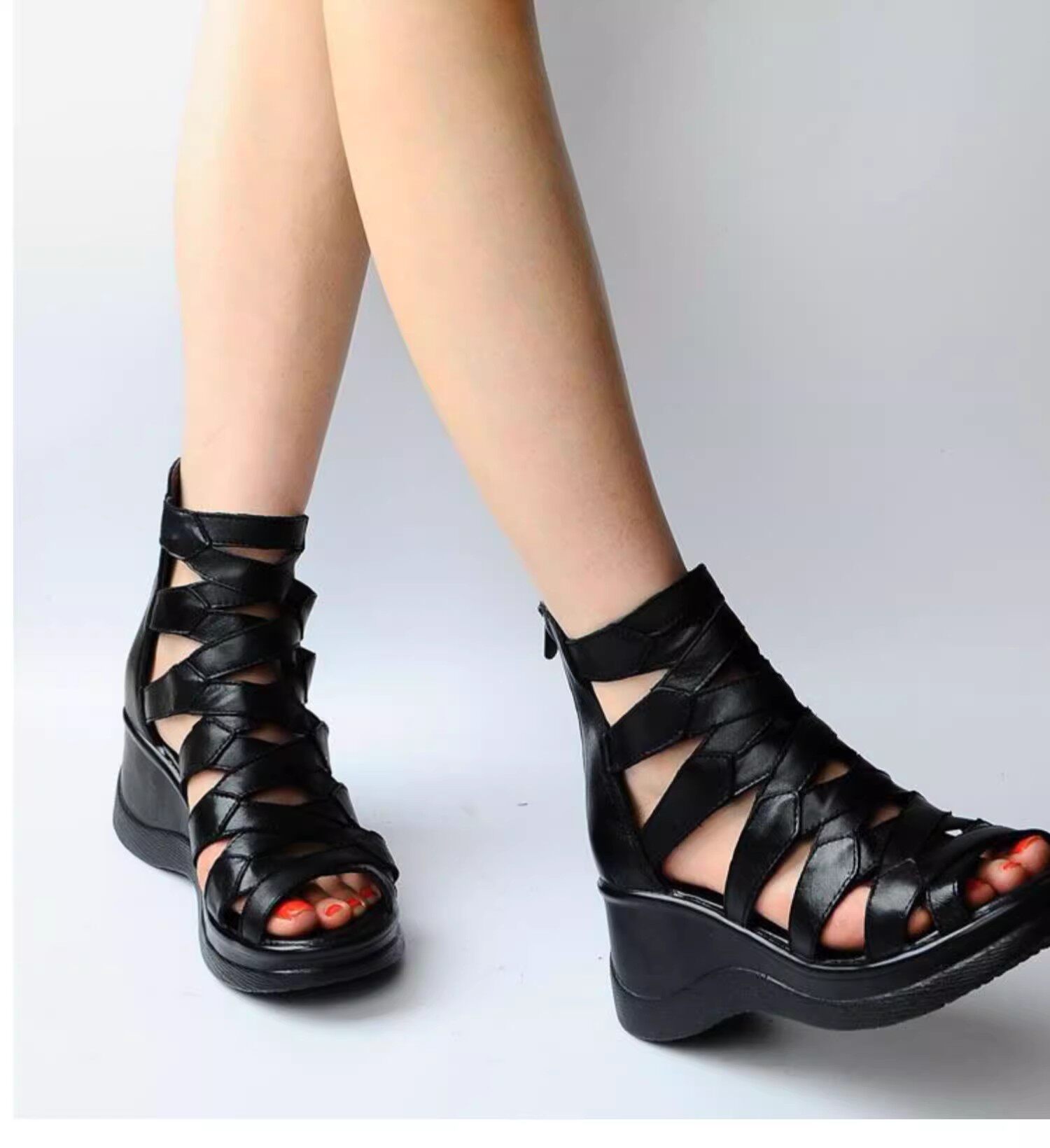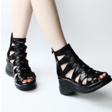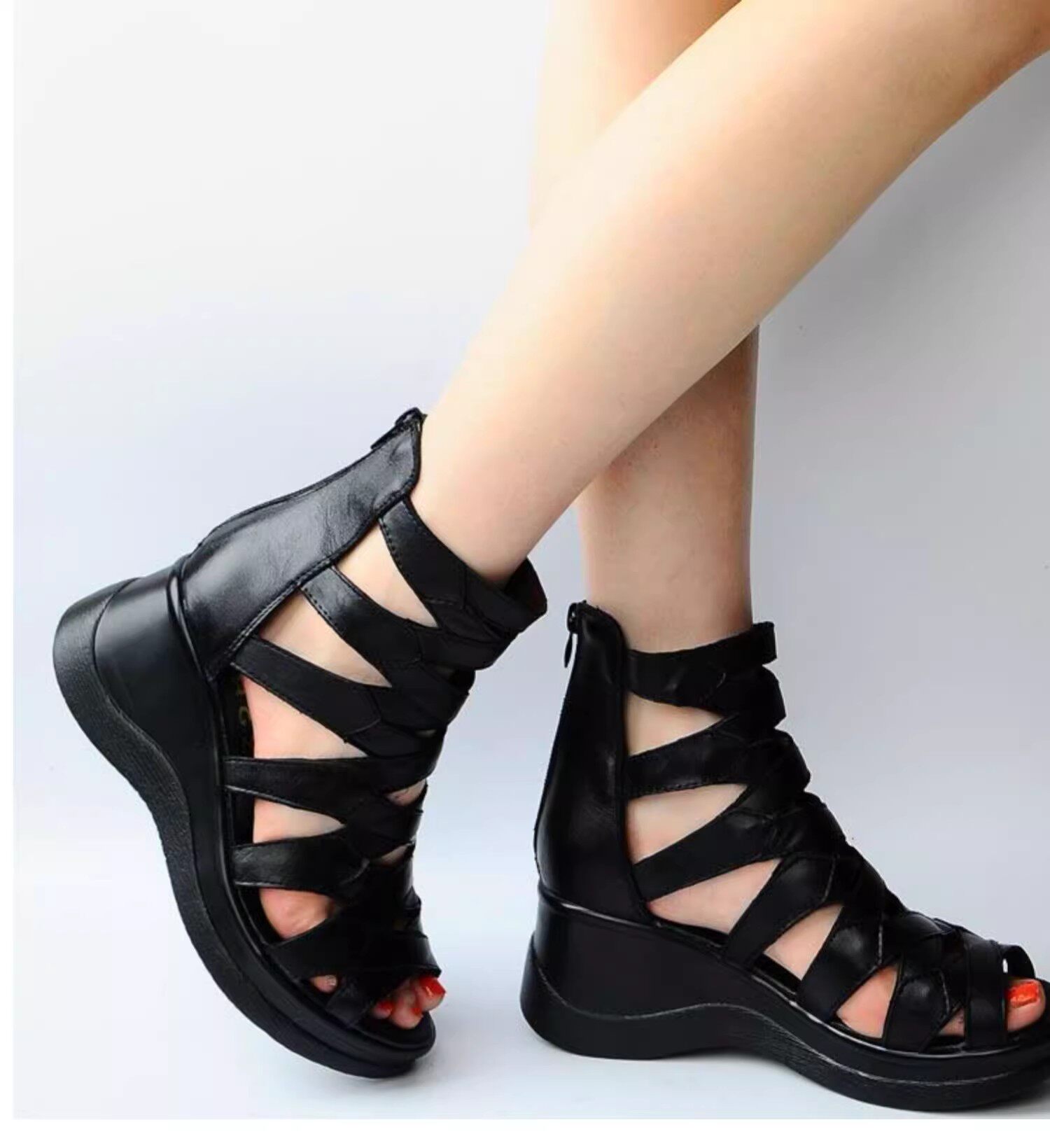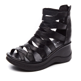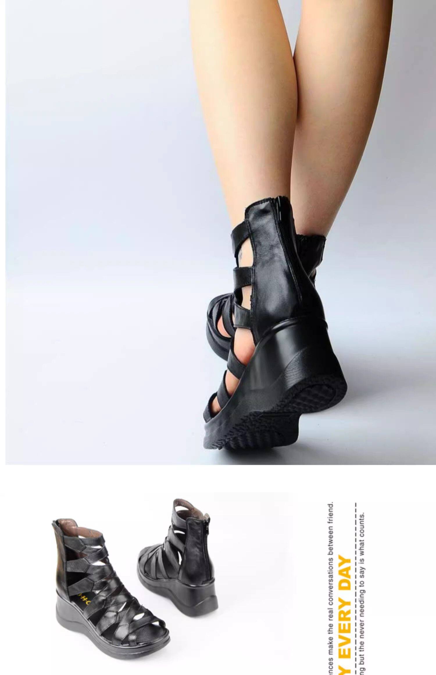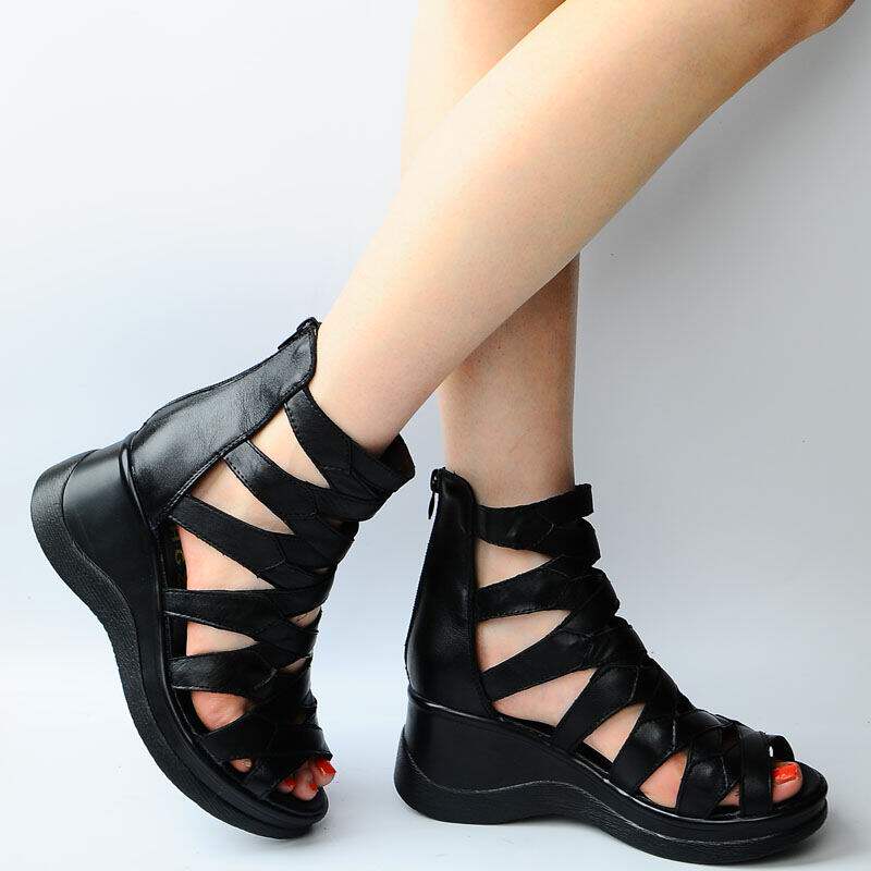 Летние кожаные модные высокие сандалии на платформе, высокая обувь, из натуральной кожи