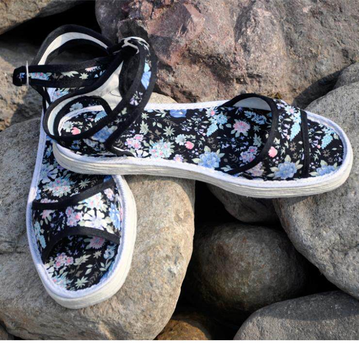 Старая пекинская ткань обуви тысячи слоев базовых наборов сандалий наполовину женские туфли для женской одиночной обувь весна и летние дышащие туфли с туфлями вождения вождения туфли
