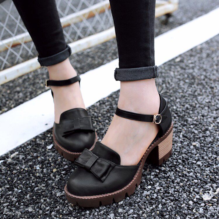 2016 летние новые босоножки на толстом каблуке в британском стиле ретро с пряжкой и бантом, женская повседневная женская обувь с круглым носком и толстой подошвой