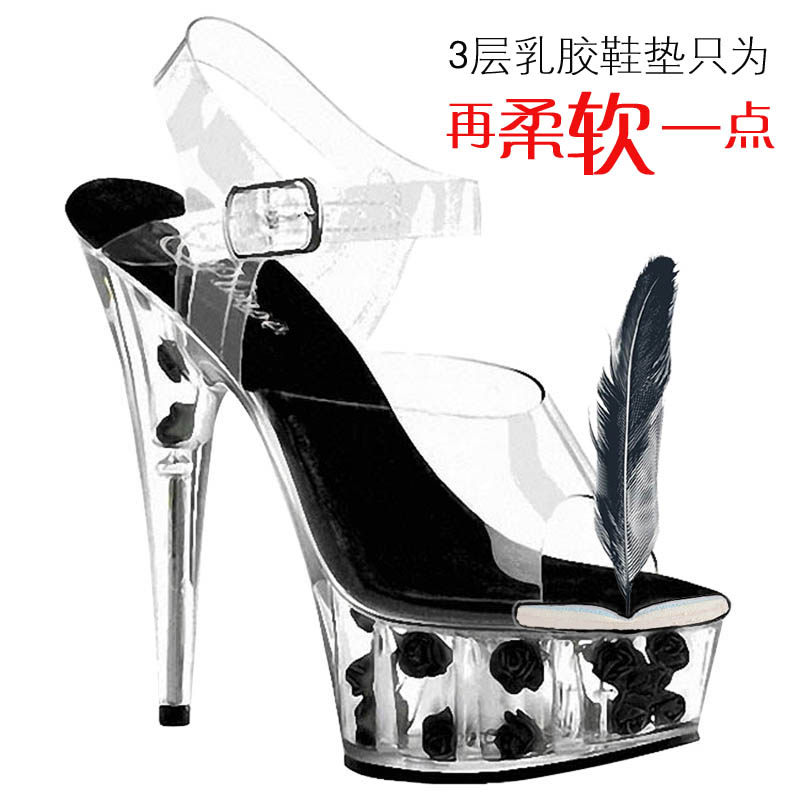 Босоножки с кристаллами 15 см, водонепроницаемая платформа, туфли на шпильке, фиолетовые туфли на высоком каблуке для танцев на шесте, пустые изделия по бокам для женщин, которые не утомляют ноги