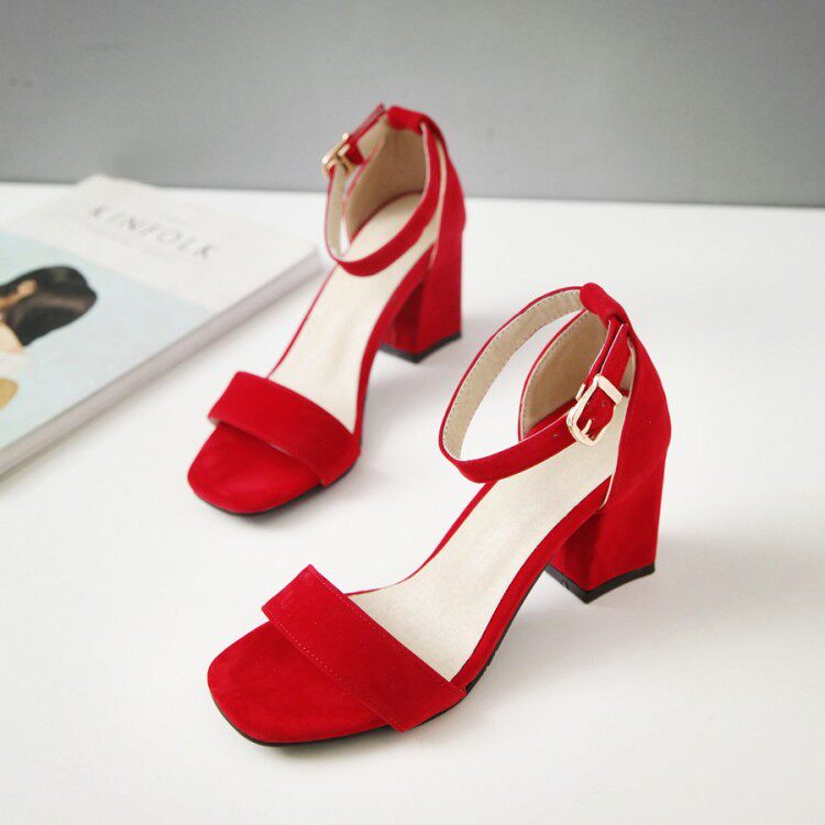 Летняя простая сумка с одним словом в корейском стиле, бархатные большие красные, бежевые, белые, серые сандалии с квадратным носком, женская обувь на толстом каблуке 7 см