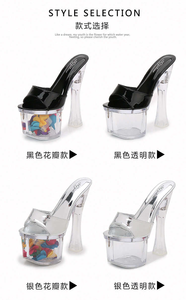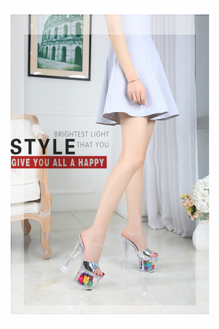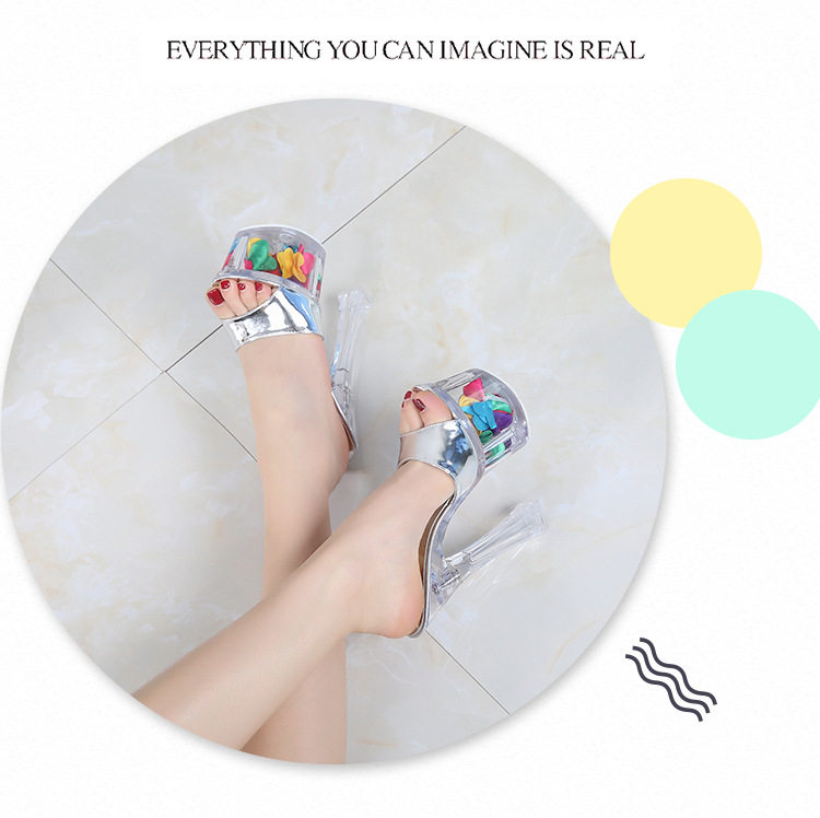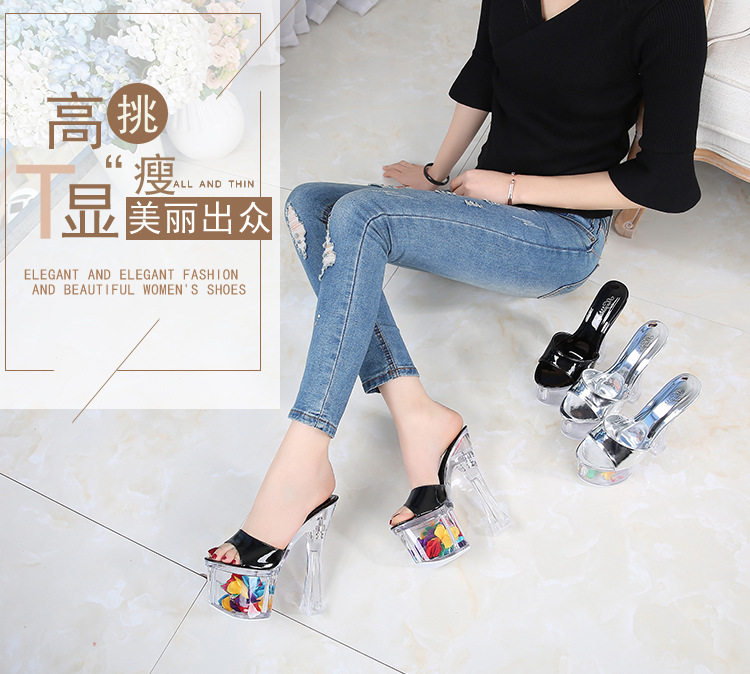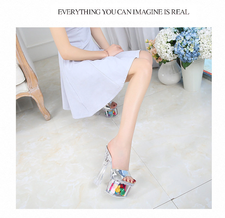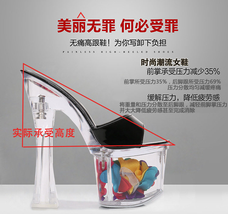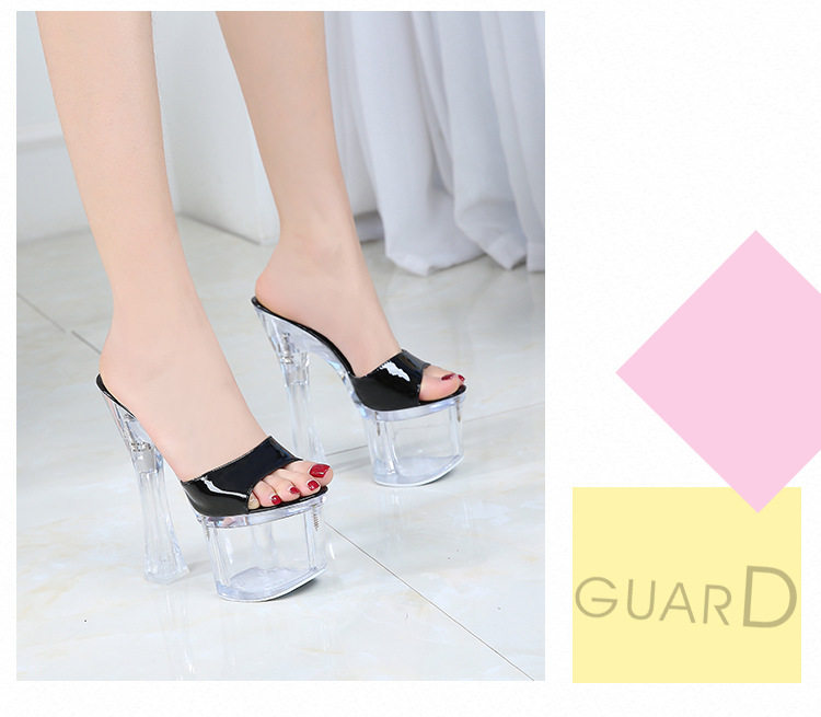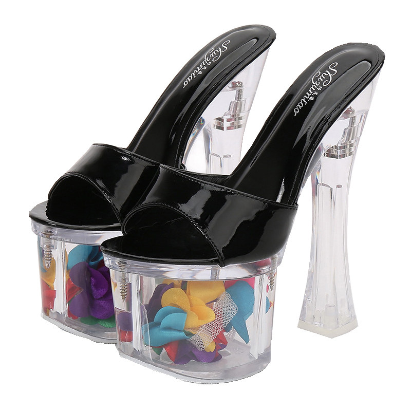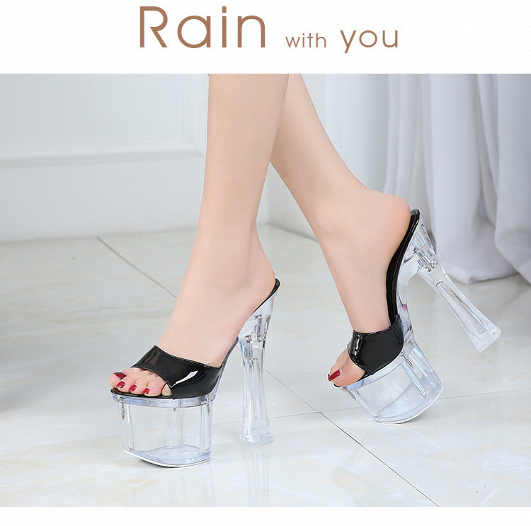 Женские тапочки с кристаллами на сверхвысоком каблуке высотой 18 см, водонепроницаемая платформа, модные и универсальные однотонные ремешки на толстом каблуке, сценические туфли интернет-знаменитостей в ночном клубе.