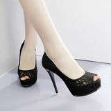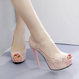 2023 корейские летние туфли с открытым носком, новые кружевные сексуальные женские босоножки на очень высоком каблуке для ночного клуба на тонком каблуке и водонепроницаемой платформе 12 см