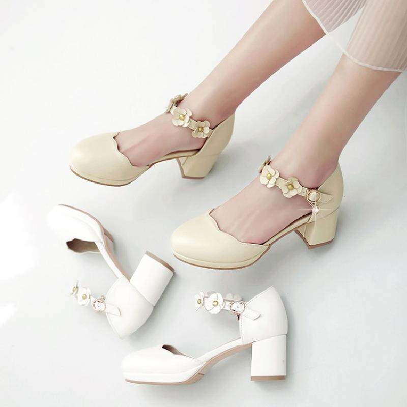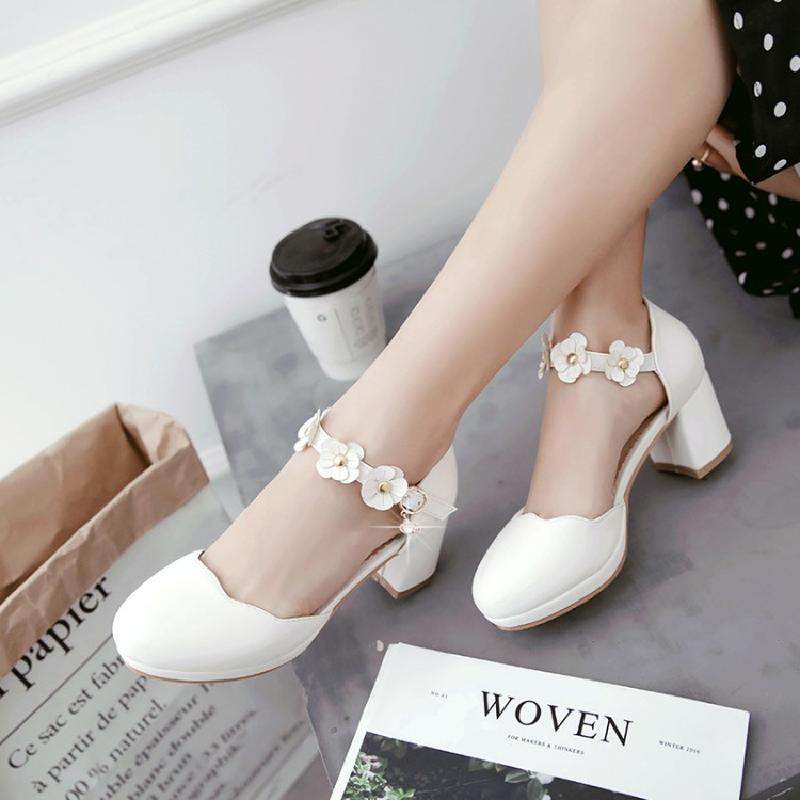 Летние милые белые босоножки для школьников и студентов, в цветочек