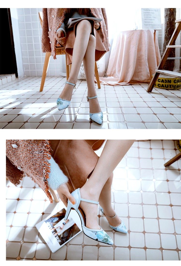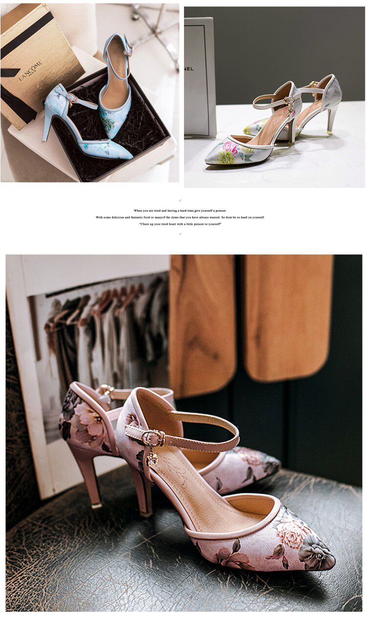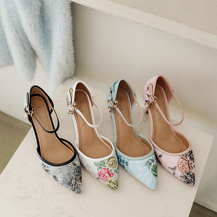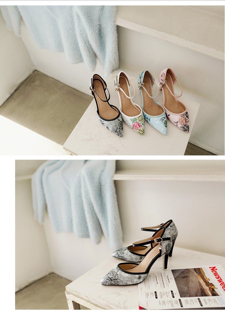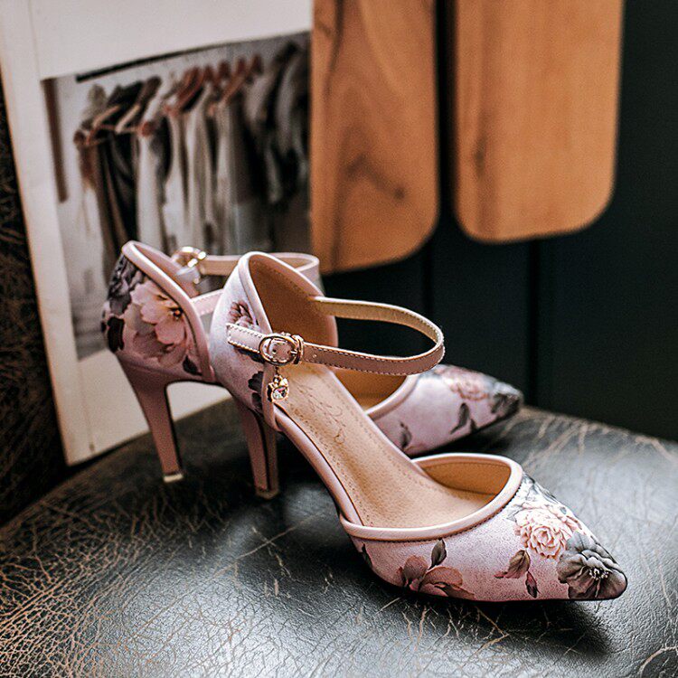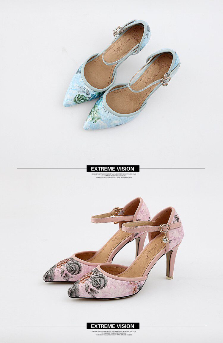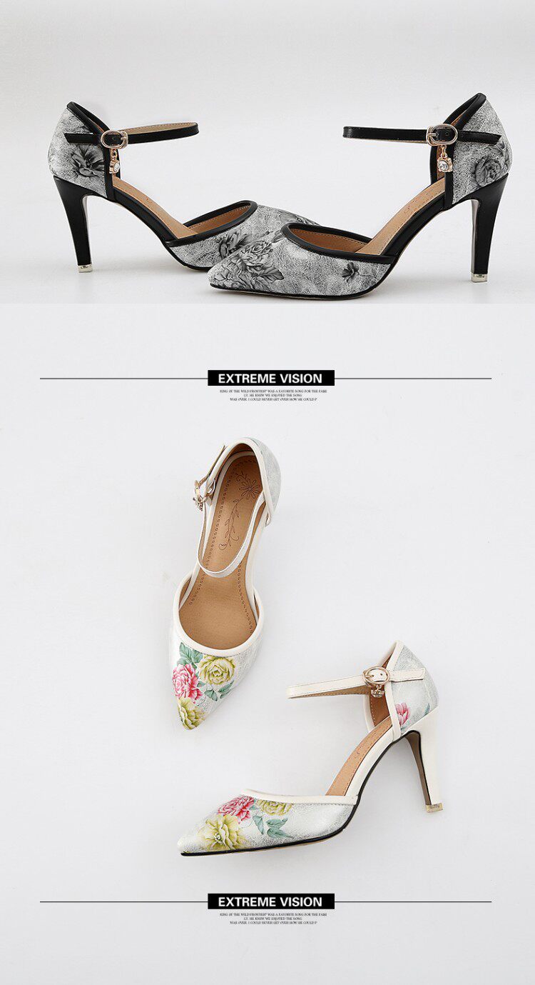 Новые босоножки на высоком каблуке с острым носком и цветочным принтом, всесезонная обувь на высоком каблуке с цветочным принтом, большие размеры 43, 44, 45, 46 размеров.