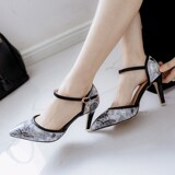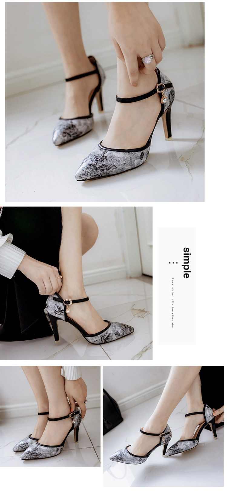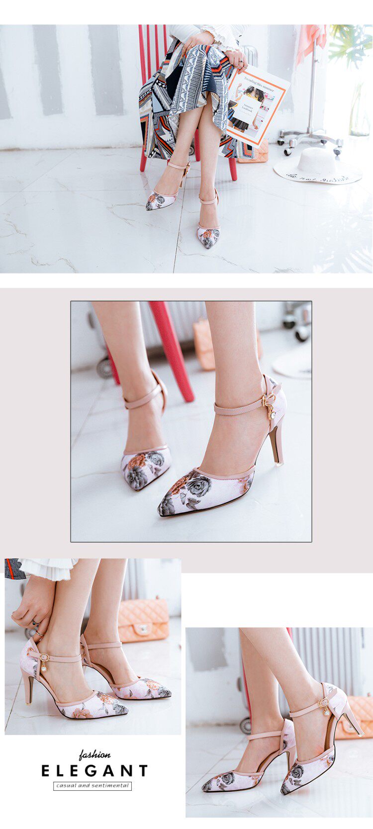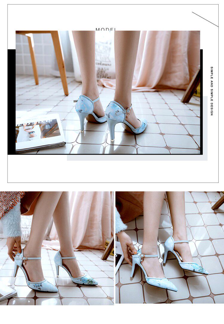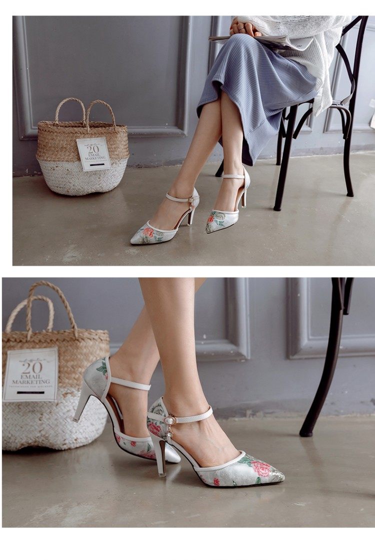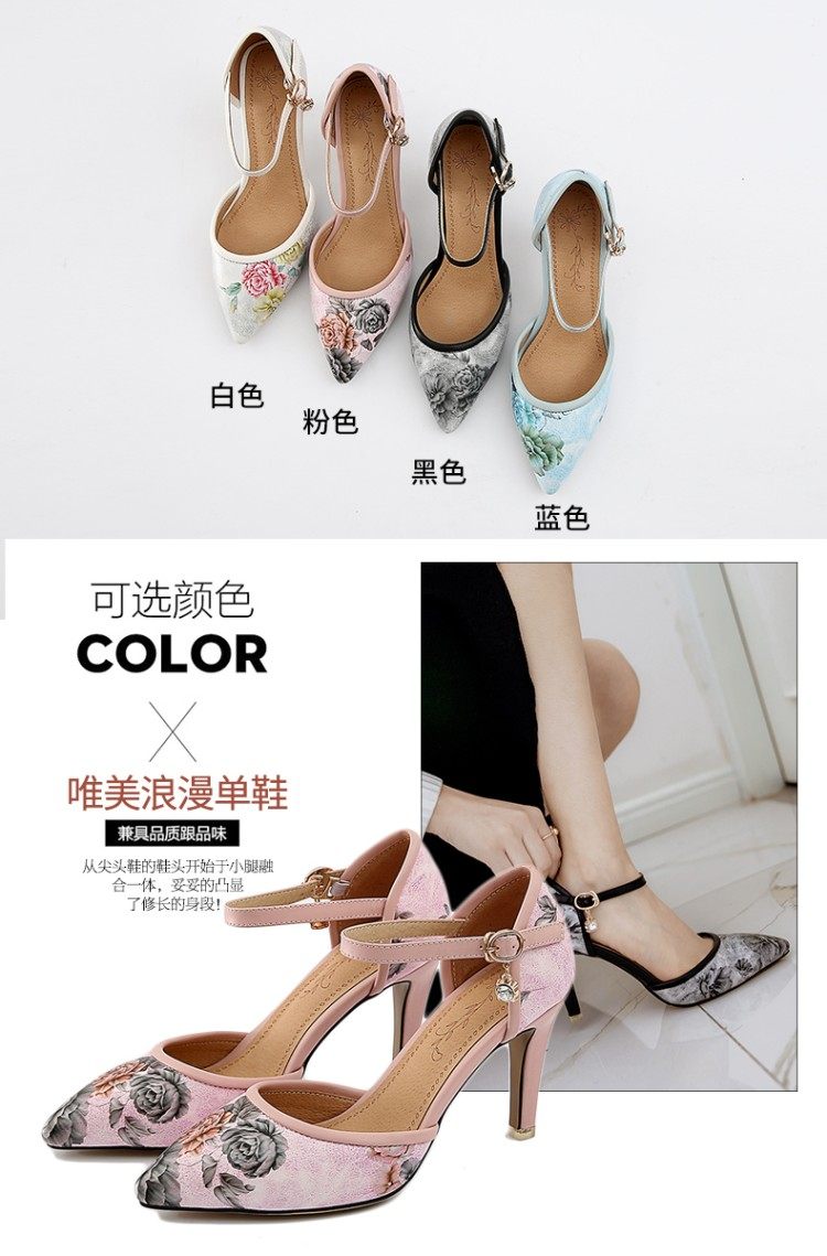 Новые босоножки на высоком каблуке с острым носком и цветочным принтом, всесезонная обувь на высоком каблуке с цветочным принтом, большие размеры 43, 44, 45, 46 размеров.