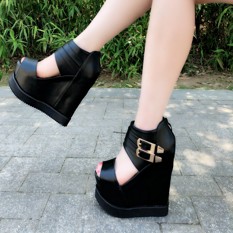 2019 весна и лето новые туфли на танкетке 15 см для ночного клуба, бисквит на толстой подошве, ненавидящие небо, высокие внутренние туфли, увеличивающие высоту, женские туфли на супер высоком каблуке, сандалии