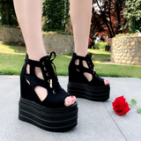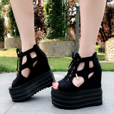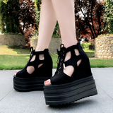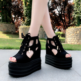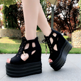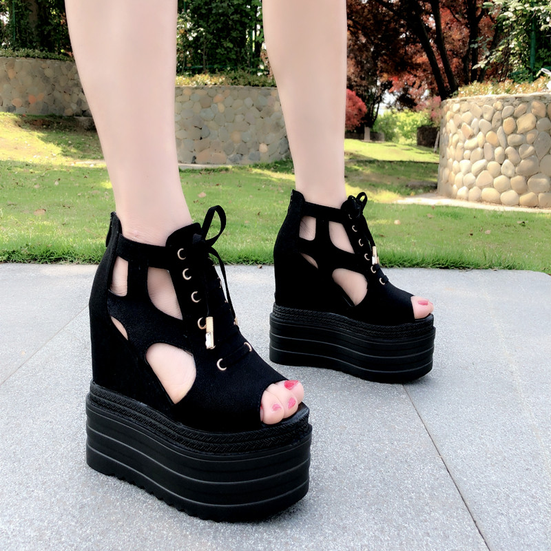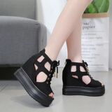2020 Корейский стиль, одиночные туфли с полым рыбьим ртом, 13 см, весенне-летние новые женские туфли на танкетке на толстой подошве, модные сандалии, увеличивающие рост