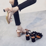 Универсальные черные босоножки с ремешком, летние туфли на высоком каблуке, 2020, в корейском стиле, популярно в интернете