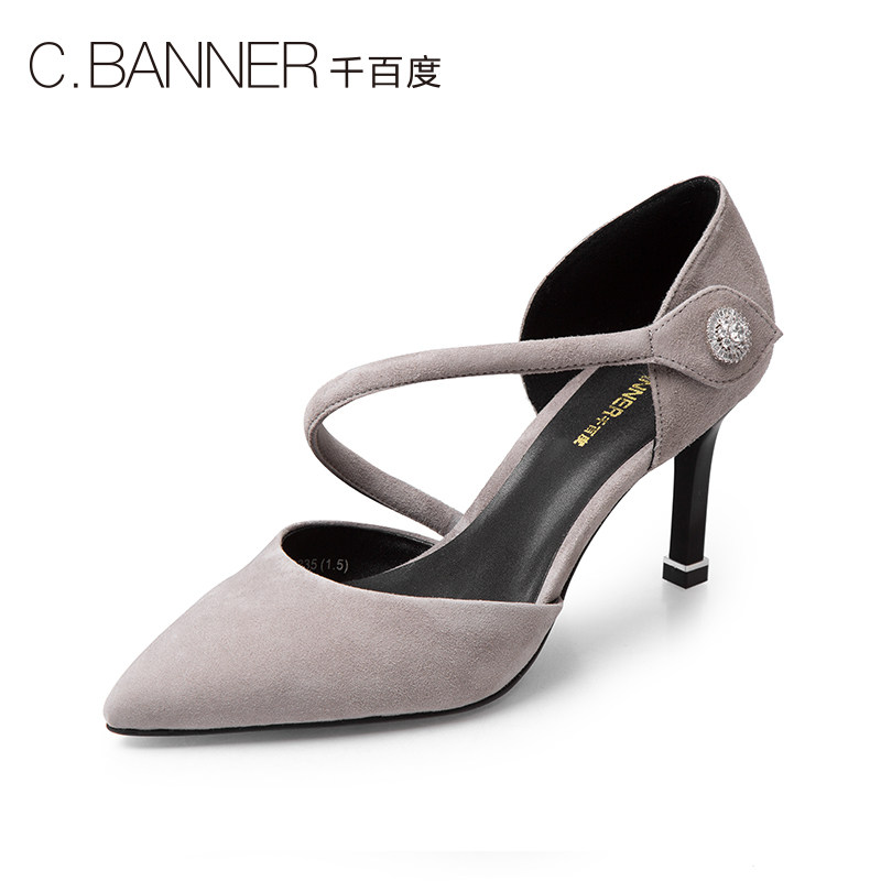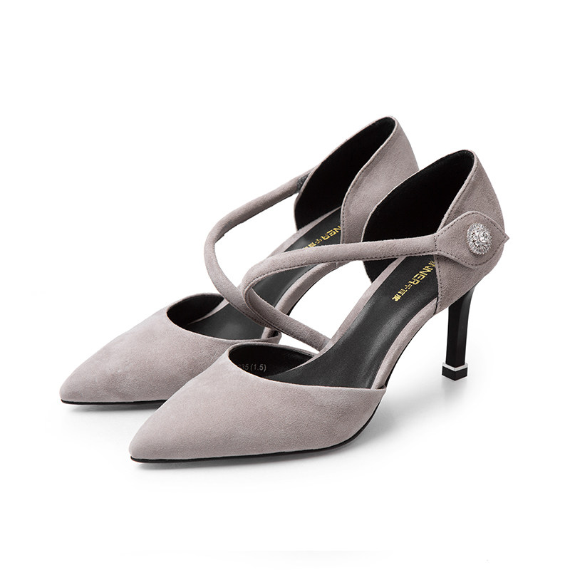 Женская обувь Qianbaidu Women's Spring и Summer Shopping Mall Тот же замша заостренное пальцем в полой стройной каблуки.