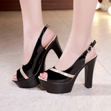 Черные сандалии на высоком каблуке, обувь на платформе, 2023, из натуральной кожи, большой размер