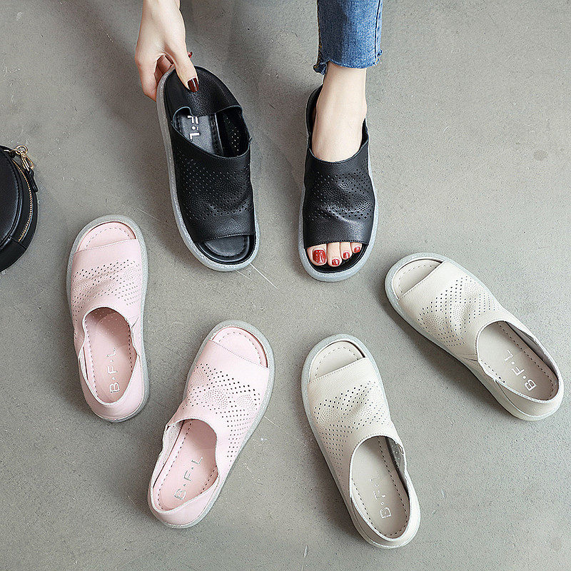 Тапочки, босоножки, большой размер, коллекция 2023, мягкая подошва, из натуральной кожи