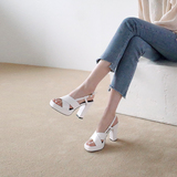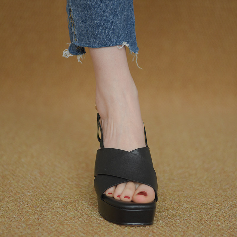 Босоножки, летние модные ретро черные туфли на высоком каблуке, из натуральной кожи, сезон 2021