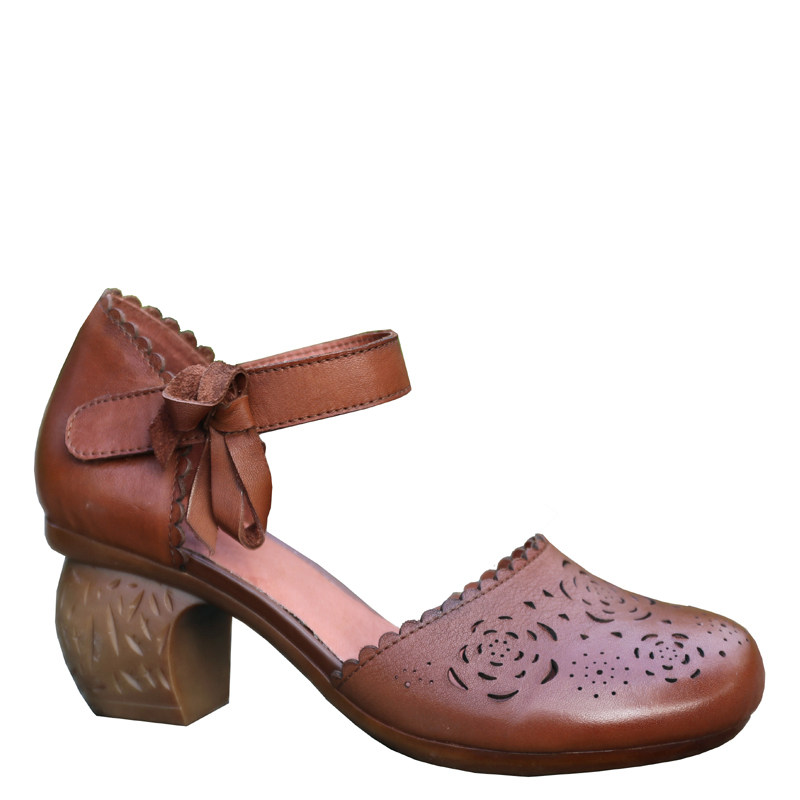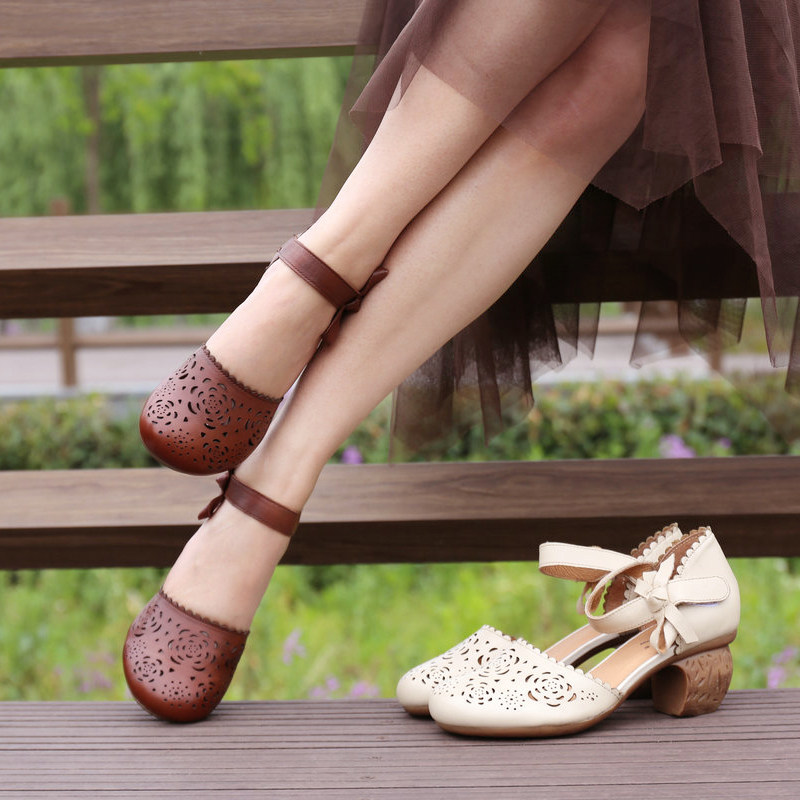 Ретро летние элегантные босоножки в английском стиле, из натуральной кожи