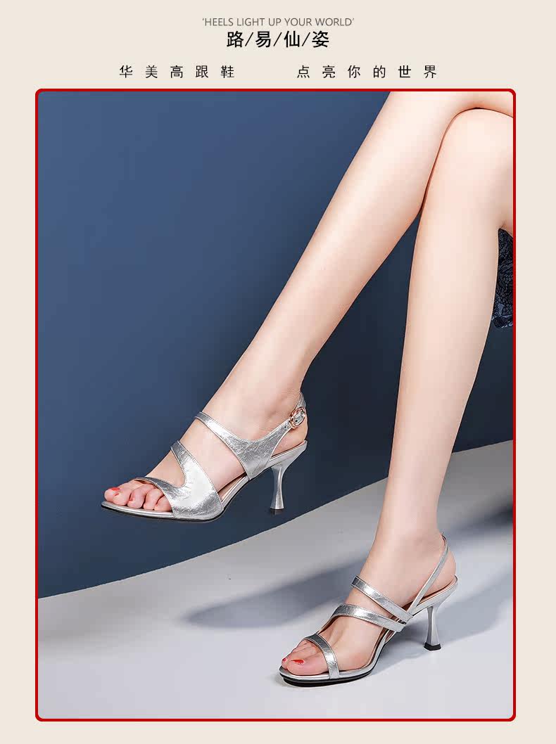 Женские босоножки, модные универсальные туфли на высоком каблуке, коллекция 2021, из натуральной кожи
