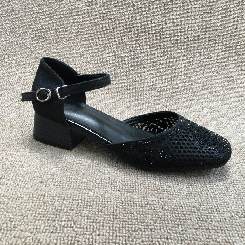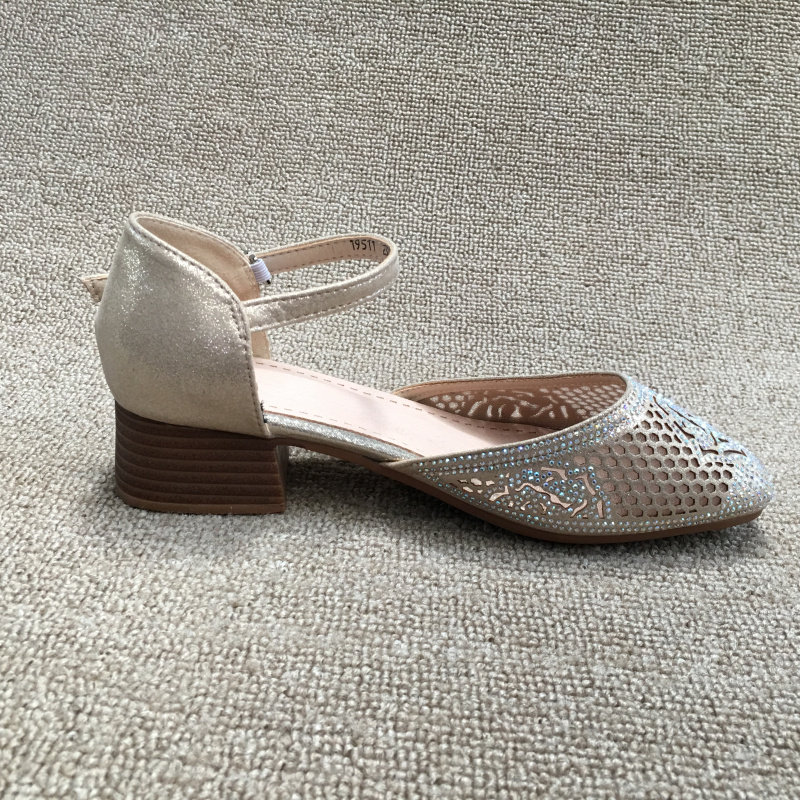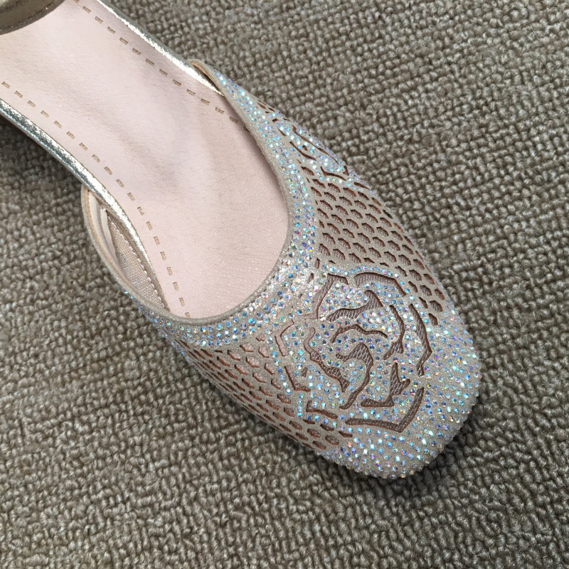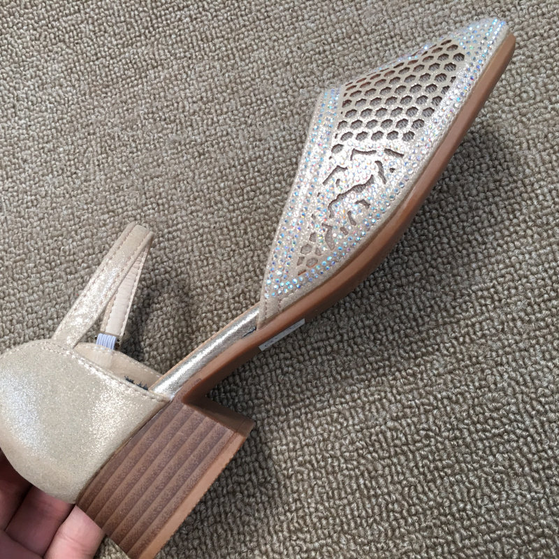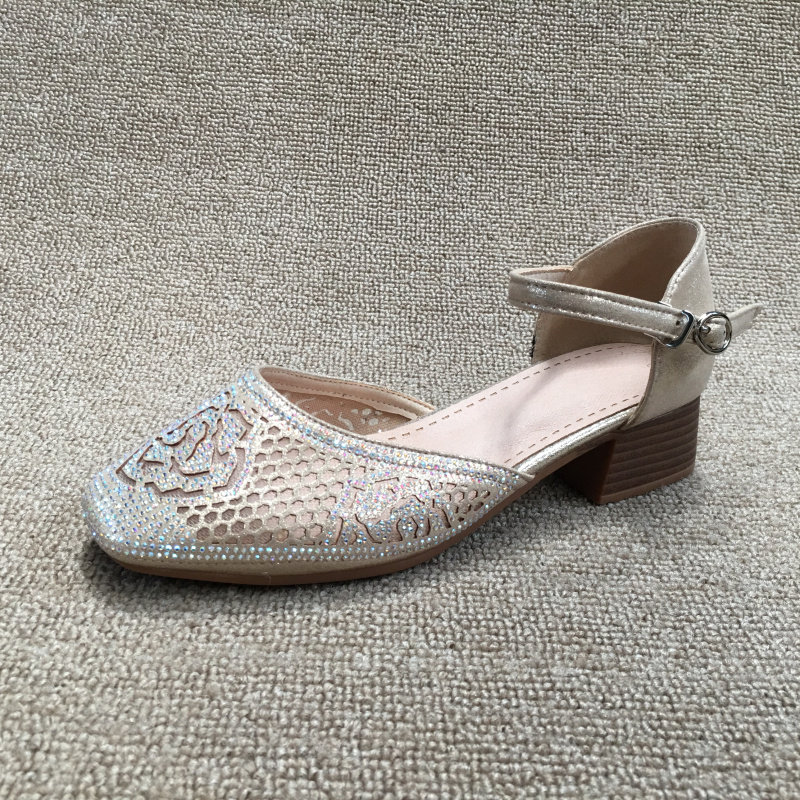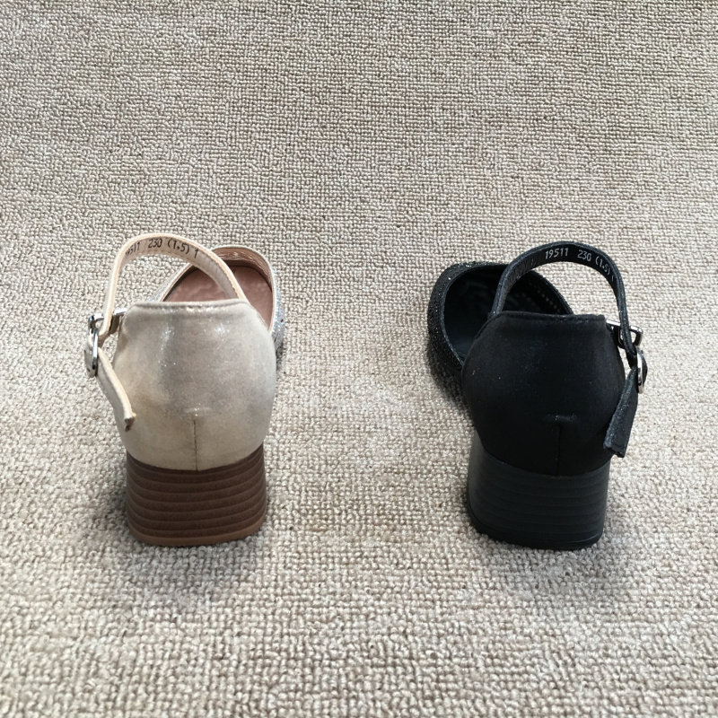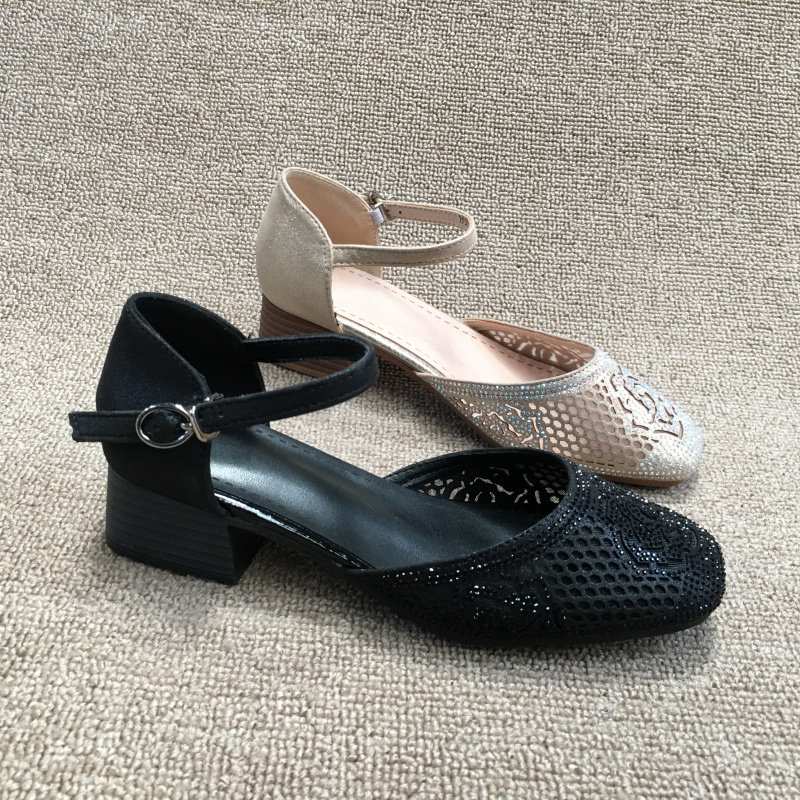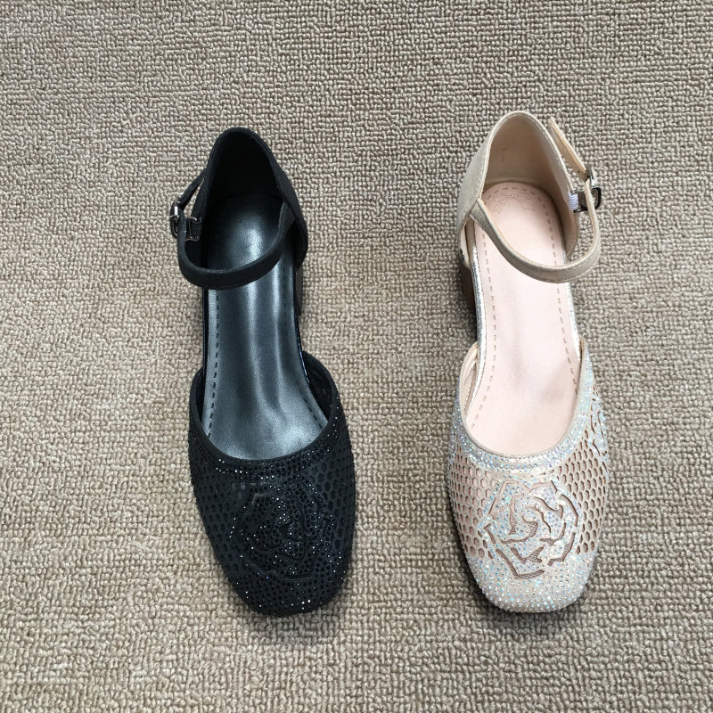 2025 весенняя новая женская обувь из обработанной натуральной кожи без кода, модные женские сандалии на низком каблуке со стразами, на толстом каблуке и с одной пряжкой