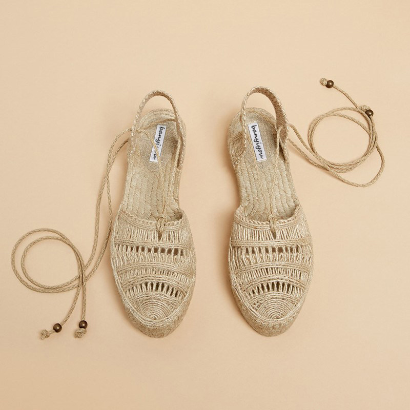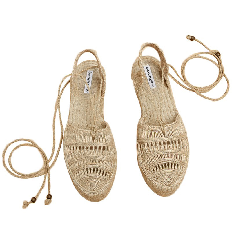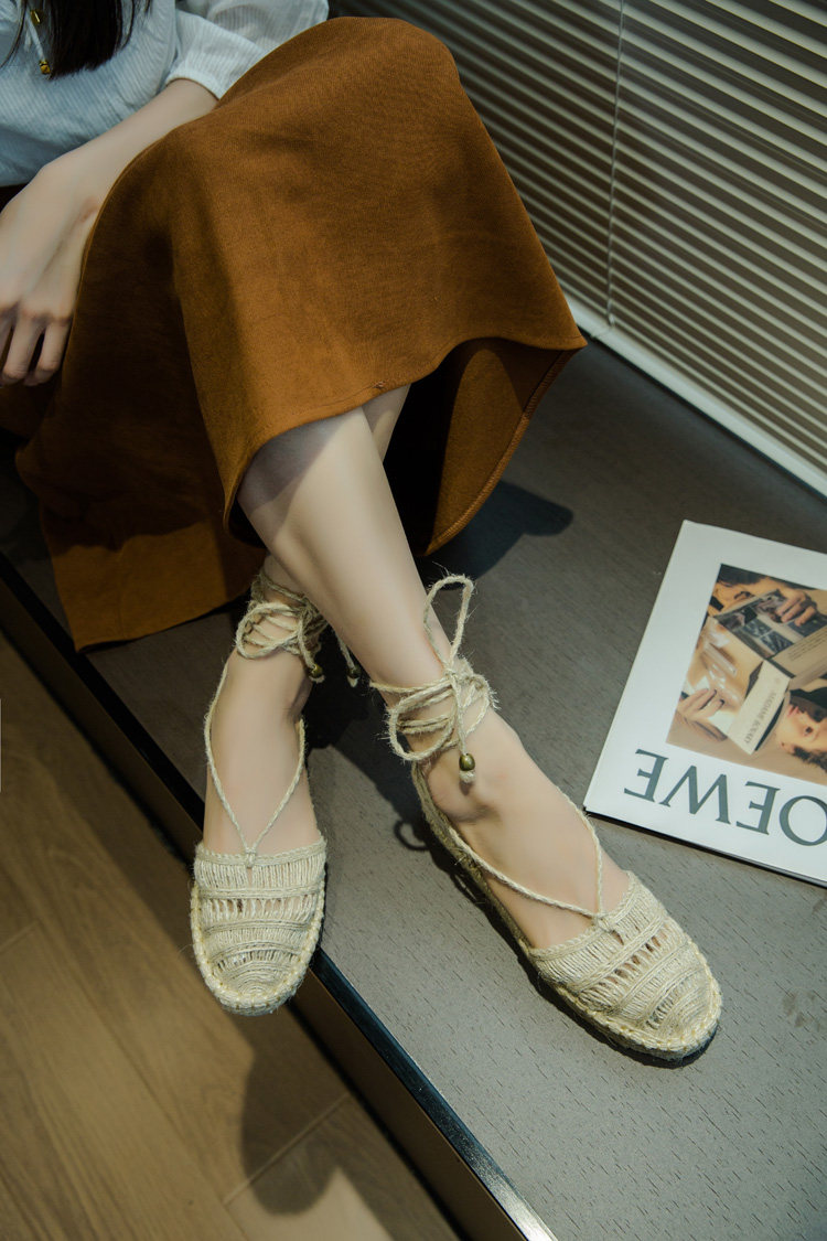 伴一游 2025 весенне-летняя универсальная обувь на плоской подошве с ремешками, соломенная рыбацкая обувь в сказочном стиле на толстой подошве, римские сандалии со знаменитостями в Интернете