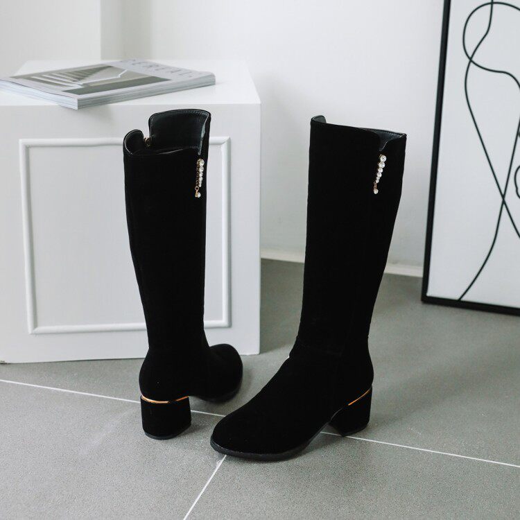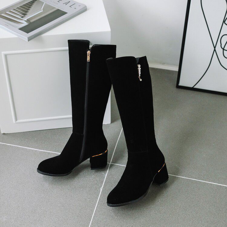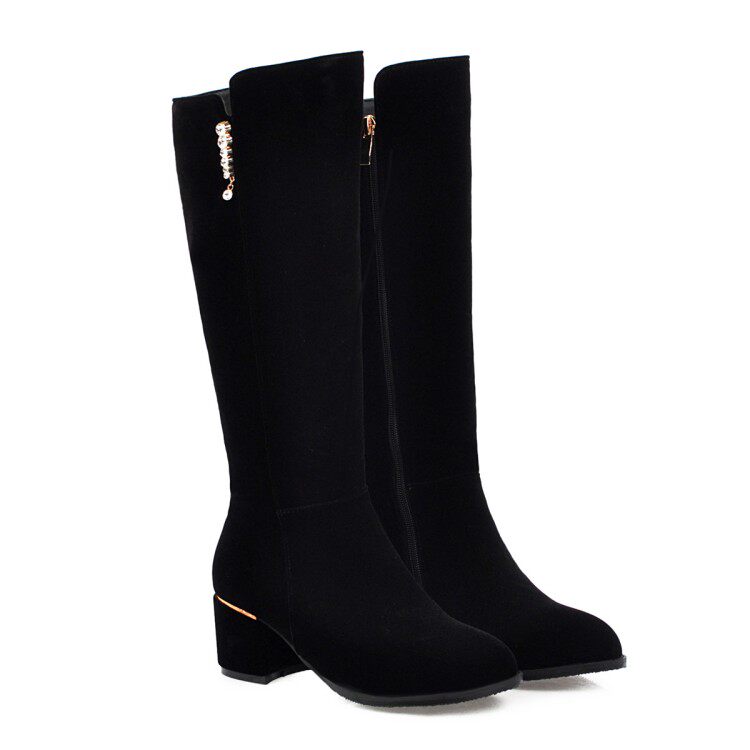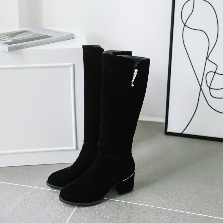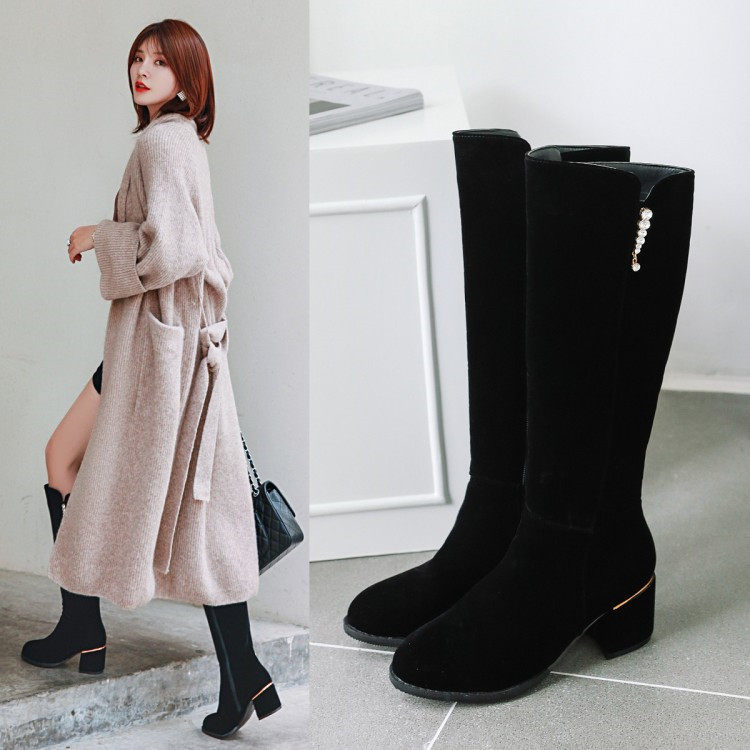 Элегантный жемчужный кулон толстый каблук Высокий ботинки Большой размер 44 45 46 47 48 49 50 ярдов в сапогах на пятке 52