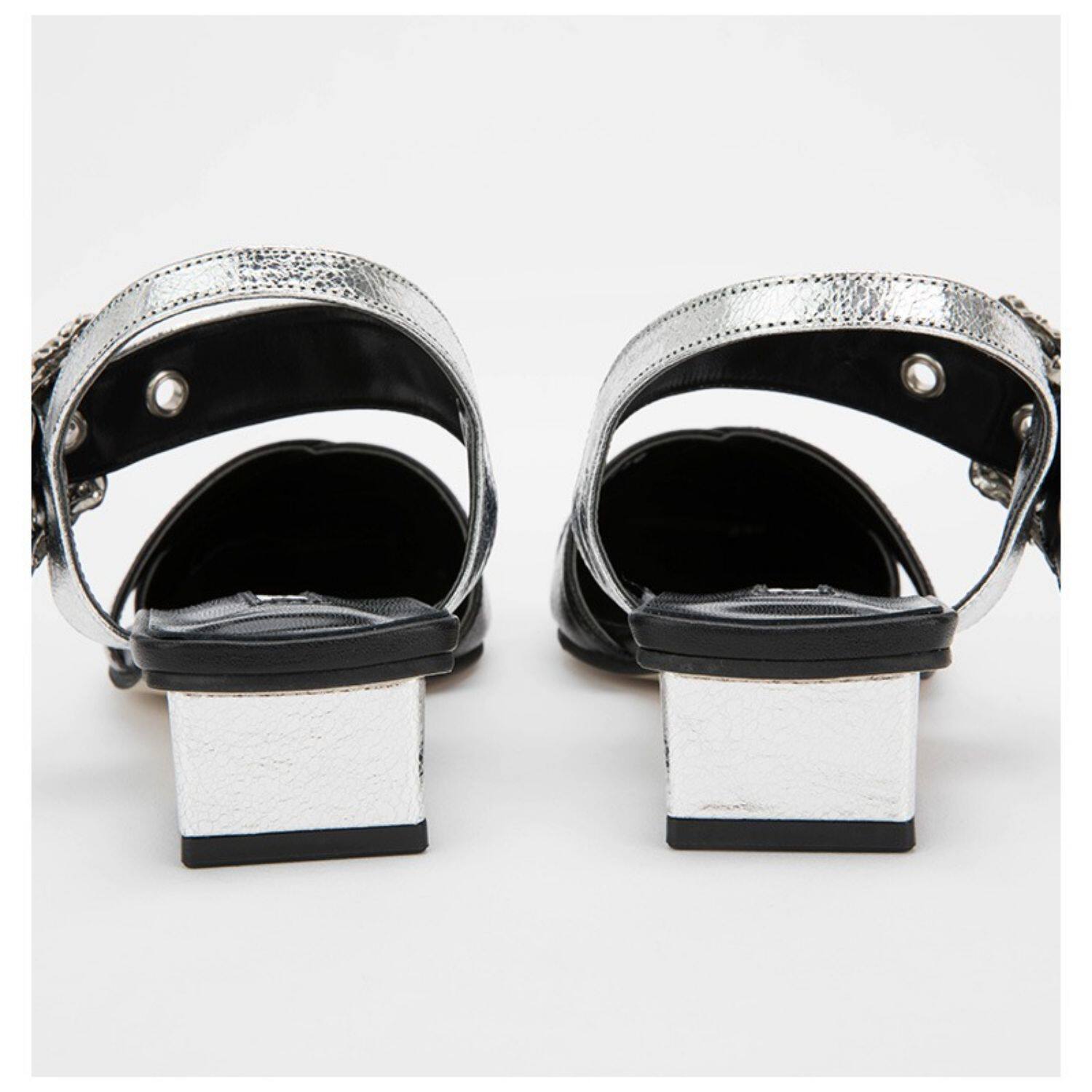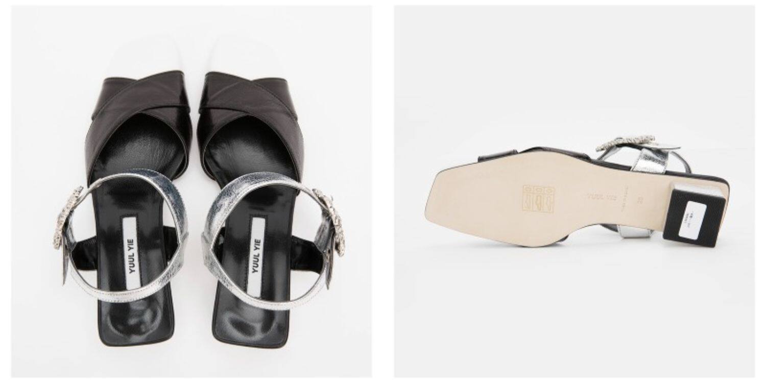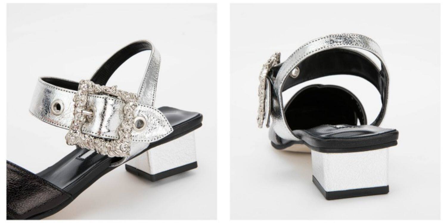 Yuul yie multi -Color Square Heel материал ковхида Трехклеровое столкновение дамы блаженство сандалии