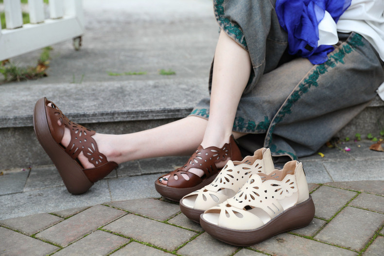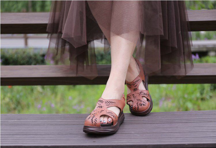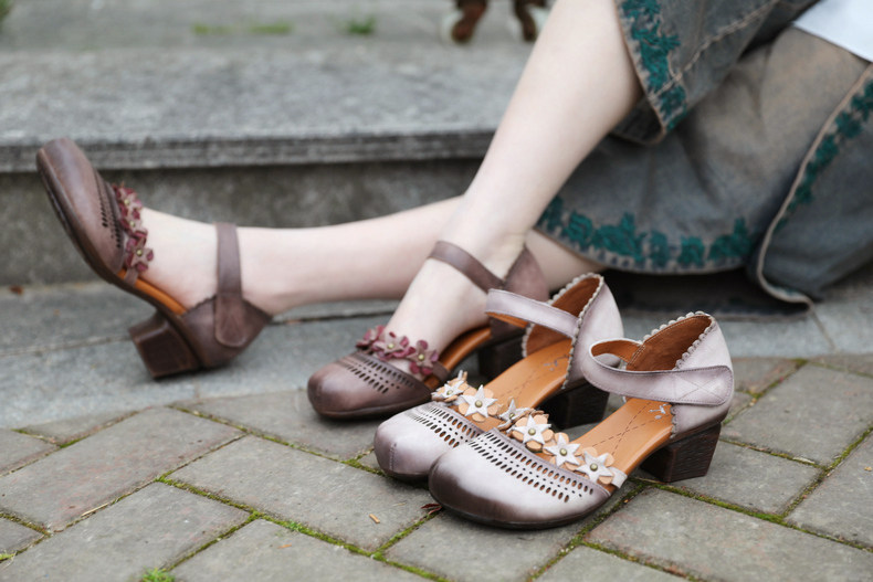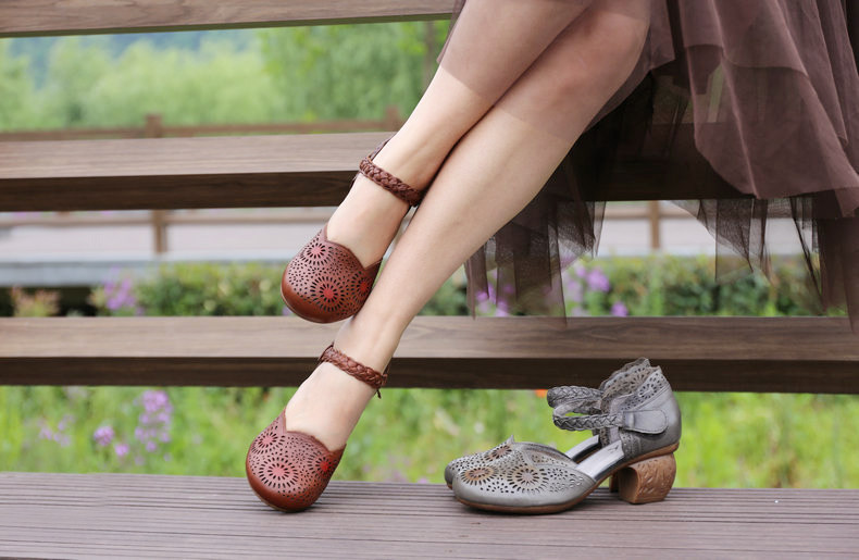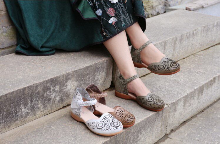 Этнические летние ретро босоножки, этнический стиль, из натуральной кожи