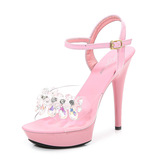 Интернет-знаменитости, модные сандалии в том же стиле, супервысокая шпилька 13 см, верхняя одежда со стразами и открытым носком, маленькие свежие модные туфли на высоком каблуке для девочек