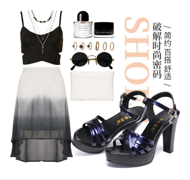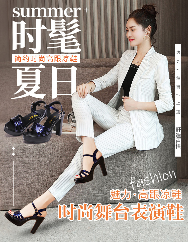 Высокие сандалии, летняя универсальная синяя обувь на платформе