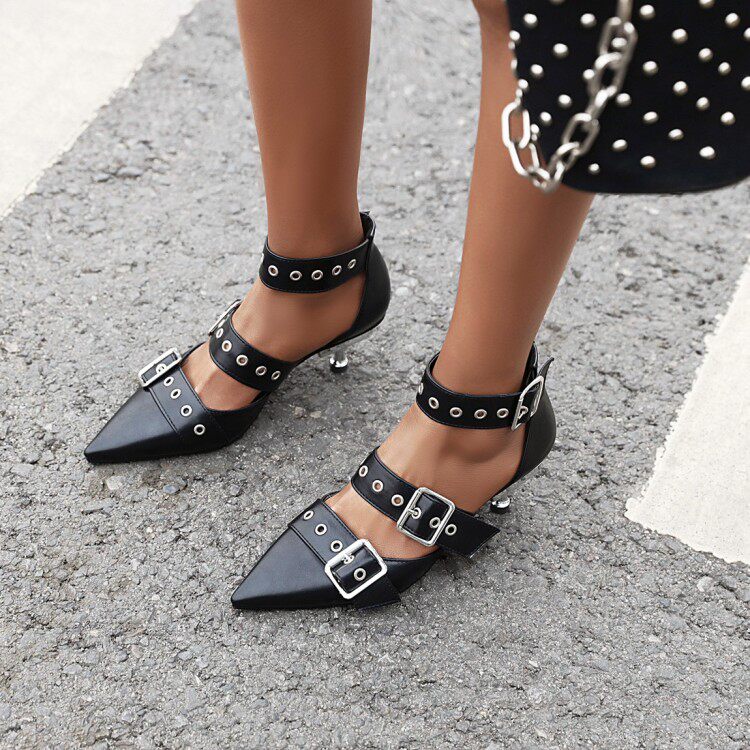 Британская модная красивая пряжка для ремня персонализированные заклепки высокого каблука Сандалии Большой размер 44 45 46 47 48 Размер четырехсезонных туфель