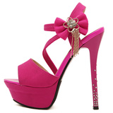Босоножки с ремешком, милые туфли на высоком каблуке с бантиком