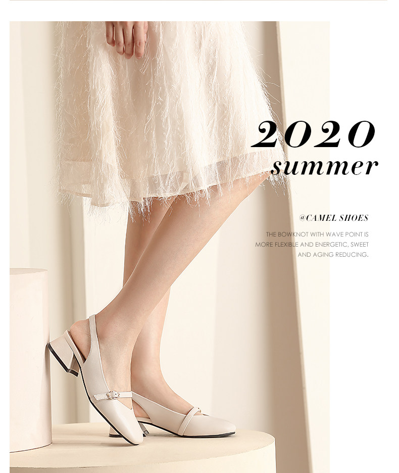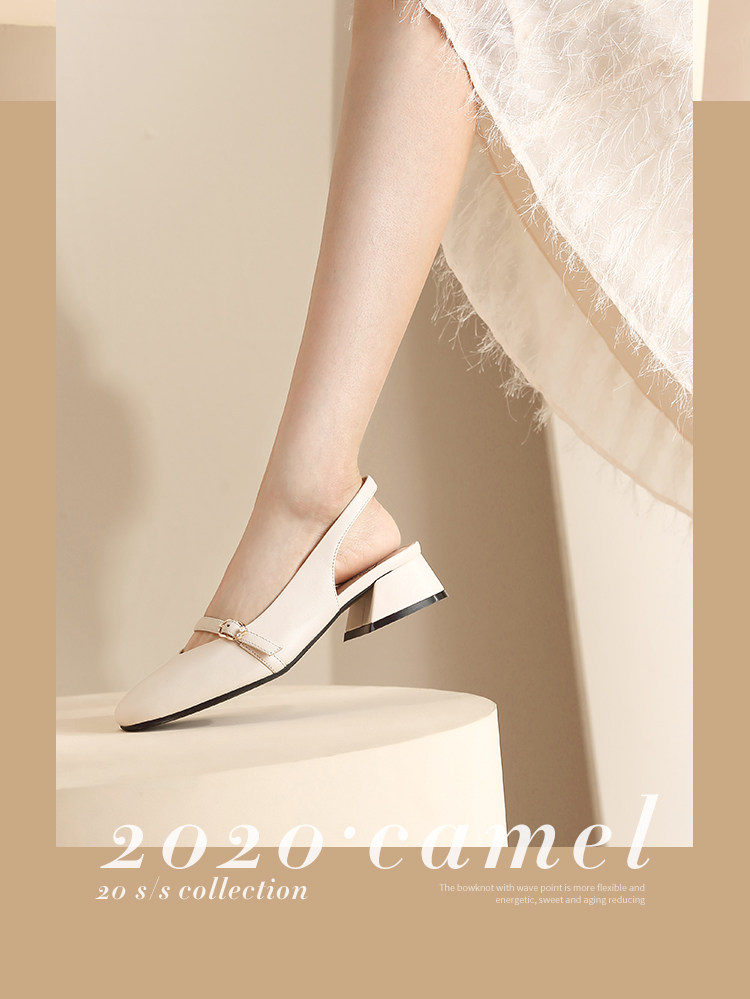 [Верблюдный верблюд] Женские туфли 2021 Летние летние круглые головы с толстыми каблуками с высоты