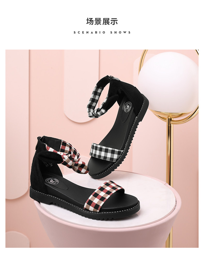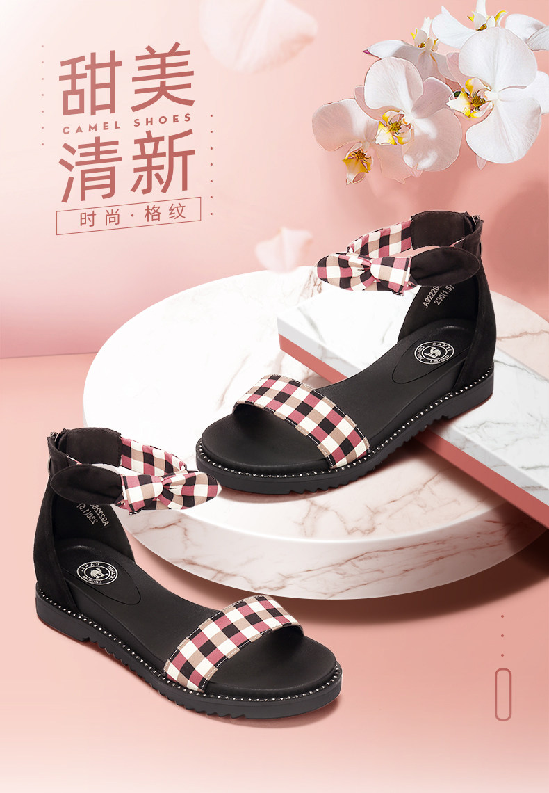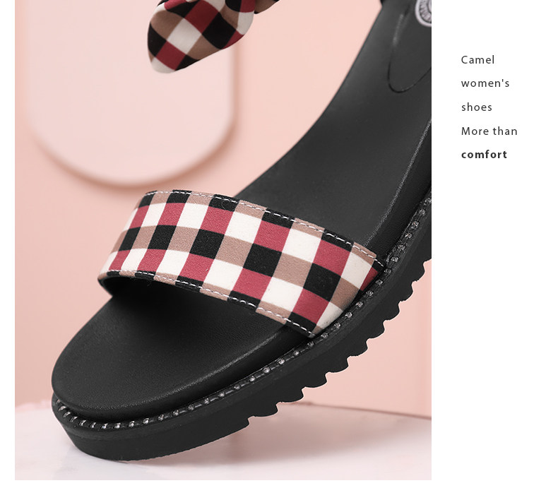 [Верблюд верблюд] Верблюд/женская обувь 2021 Летняя мода Проверка персонажа Флэт -Боттом Склон Ландау Девушка
