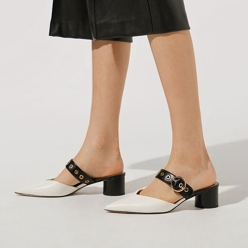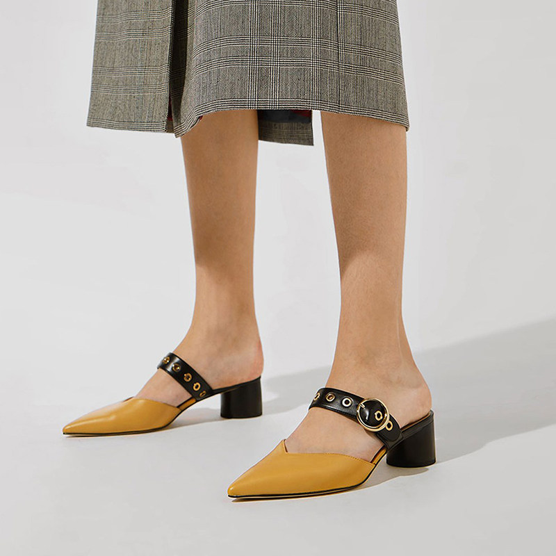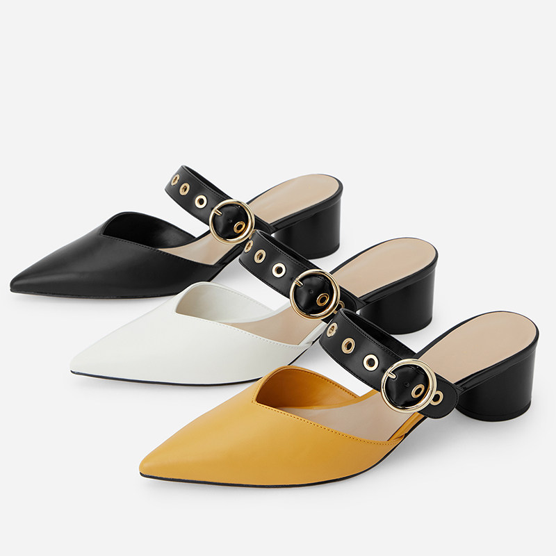 Маленькие сандалии CK1 для женской верхней одежды, летние туфли-мулы на толстом каблуке, модные сандалии с острым носком, женские полутапочки в сказочном стиле с носком