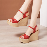 Сандалии, высокая летняя обувь на платформе, 2022, из натуральной кожи