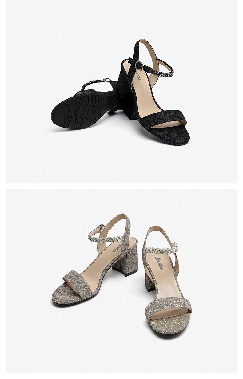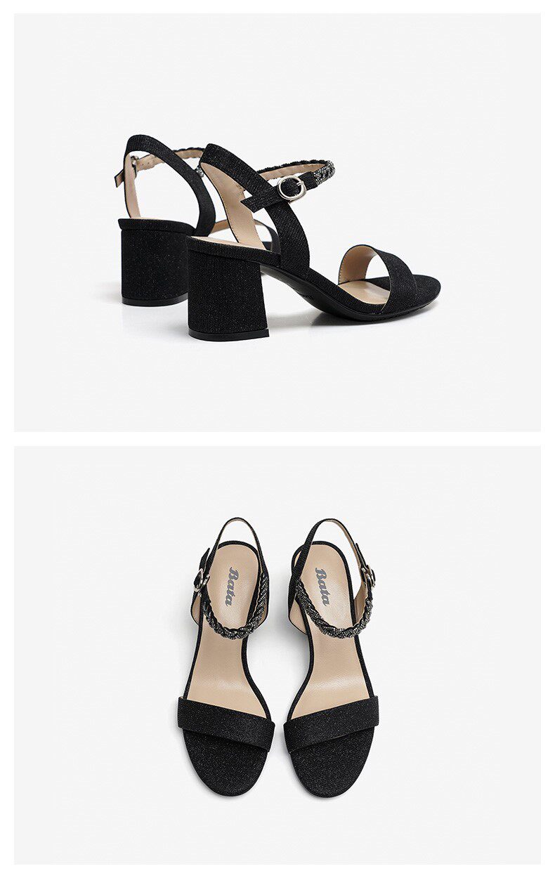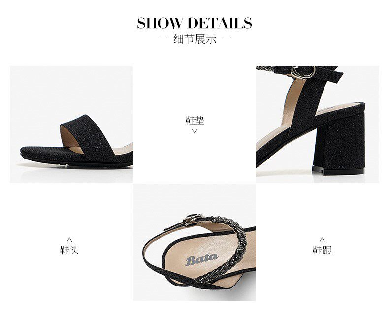 Bata Fairy -Syle Sandals One -Like Buckle 2020 Новый страб сотни толстых высоких каблуков 29181bl0