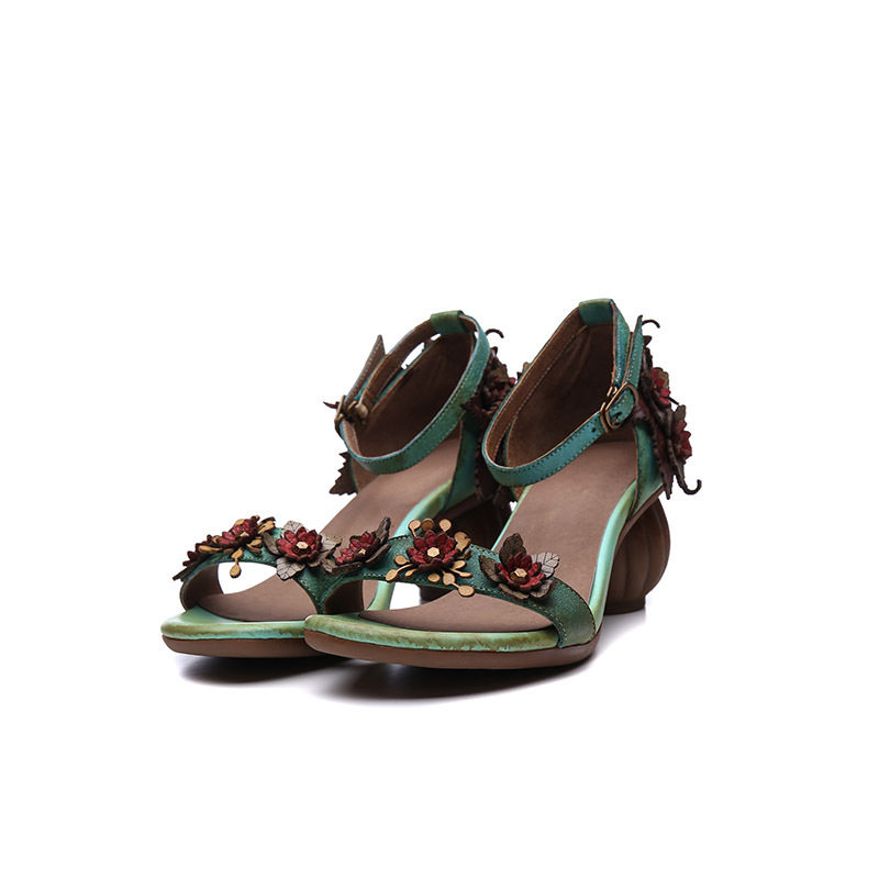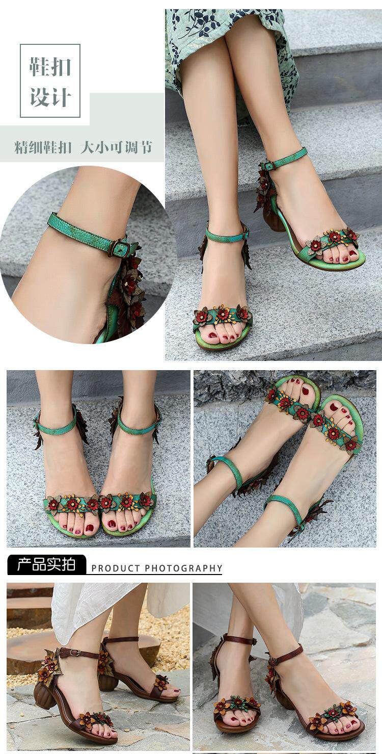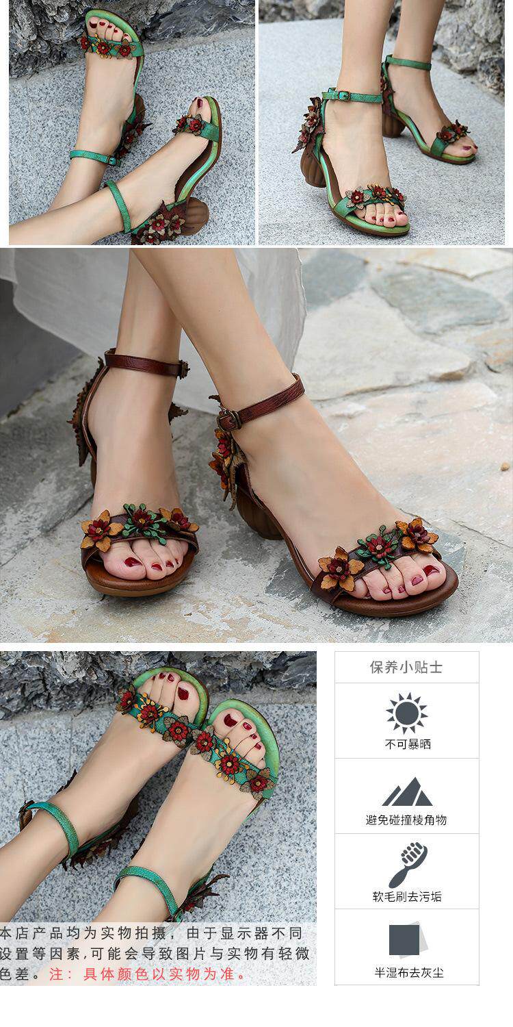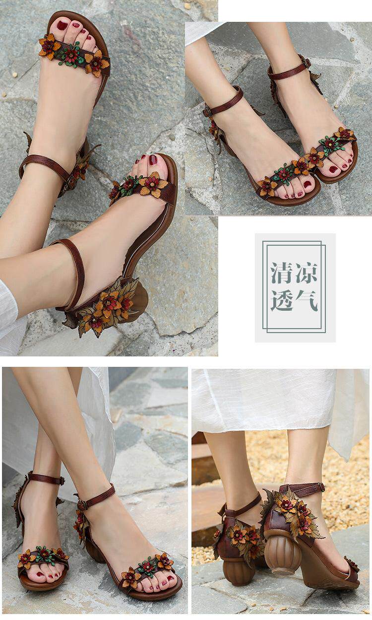 Летние сандалии, обувь на высоком каблуке, 2022, из натуральной кожи, в цветочек