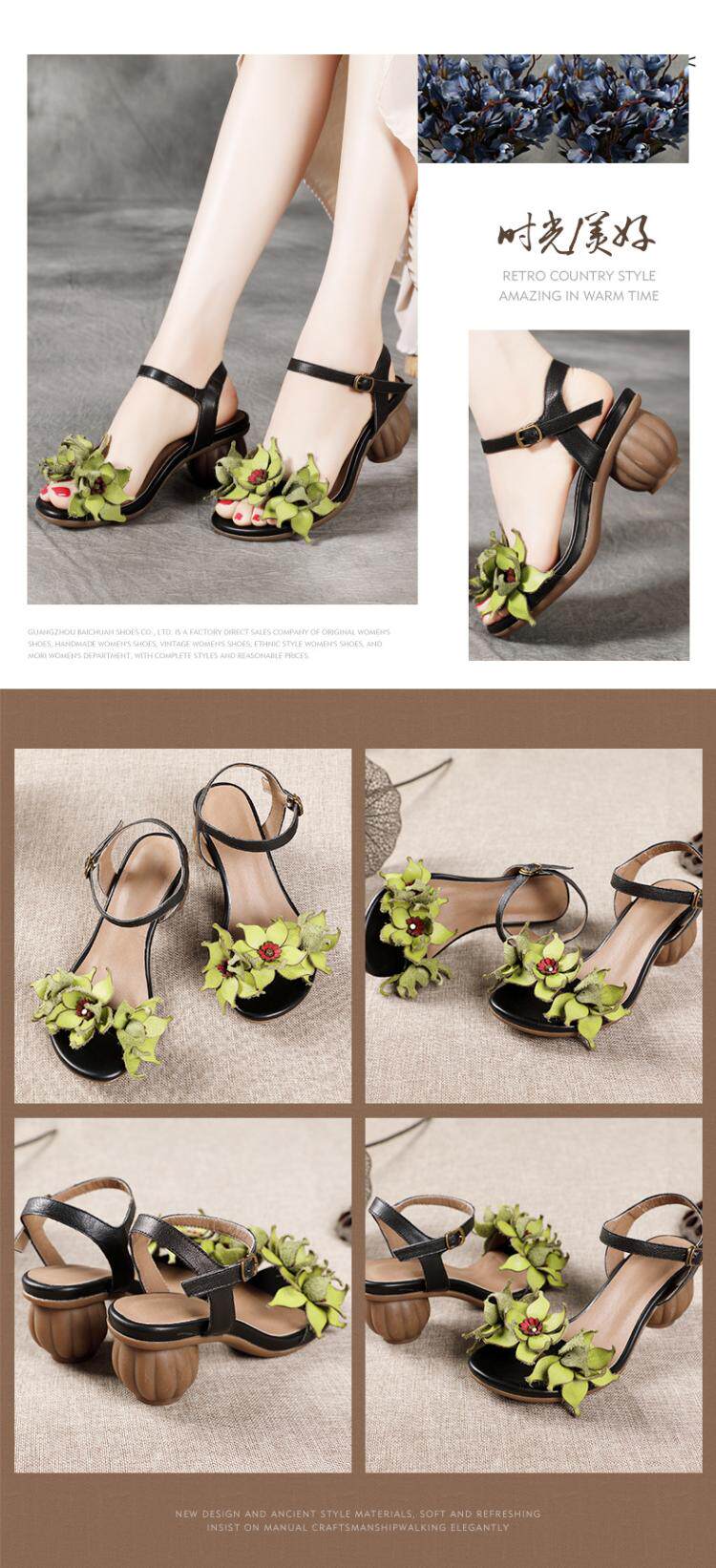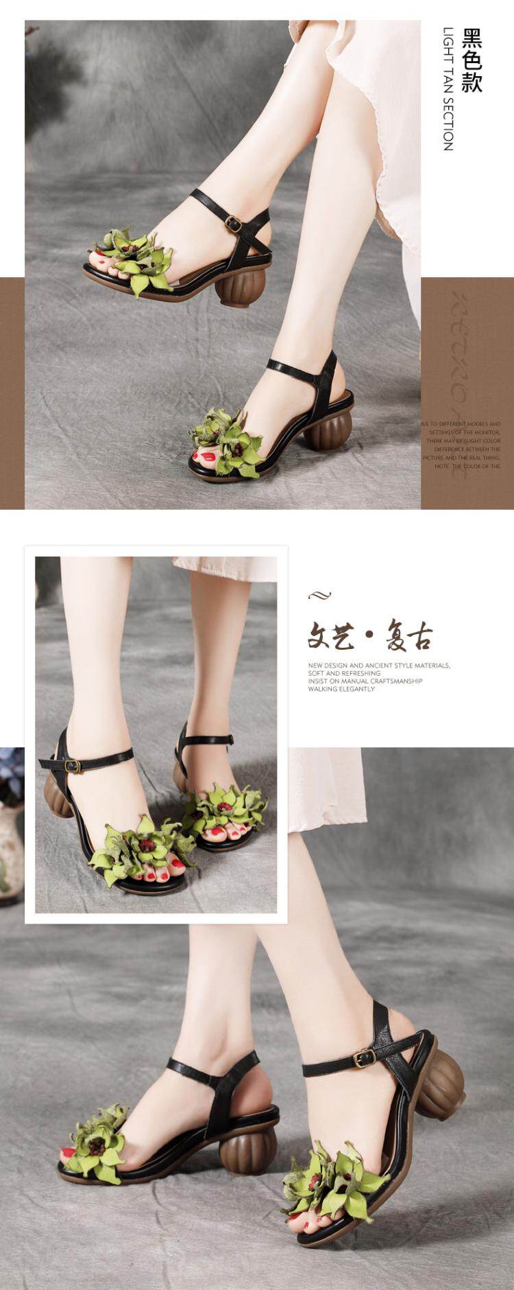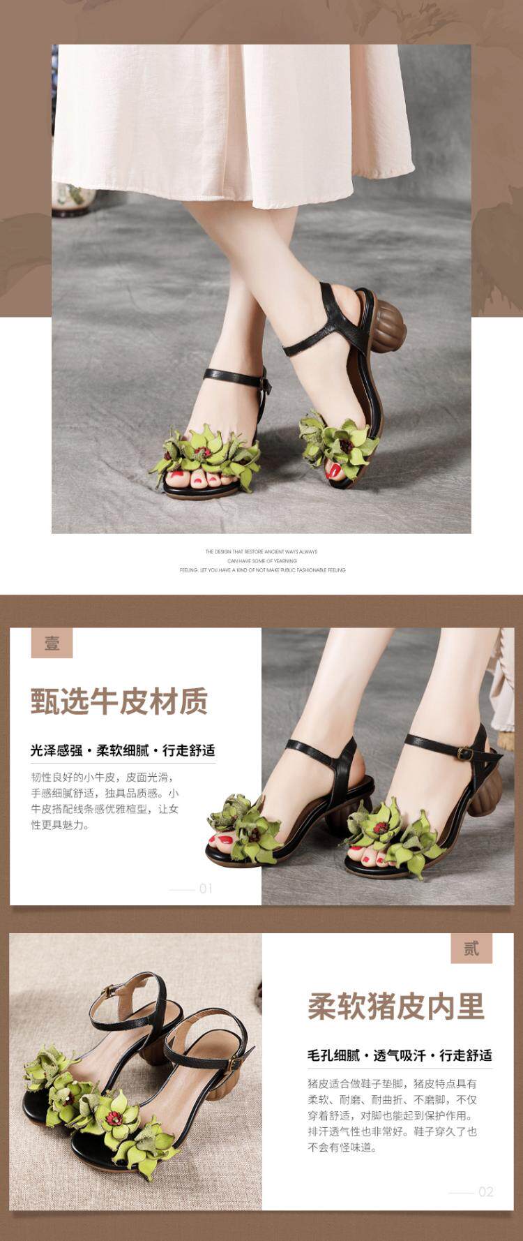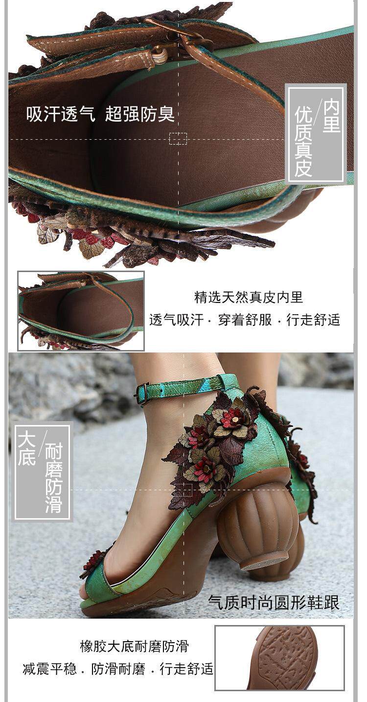 Летние сандалии, обувь на высоком каблуке, 2022, из натуральной кожи, в цветочек