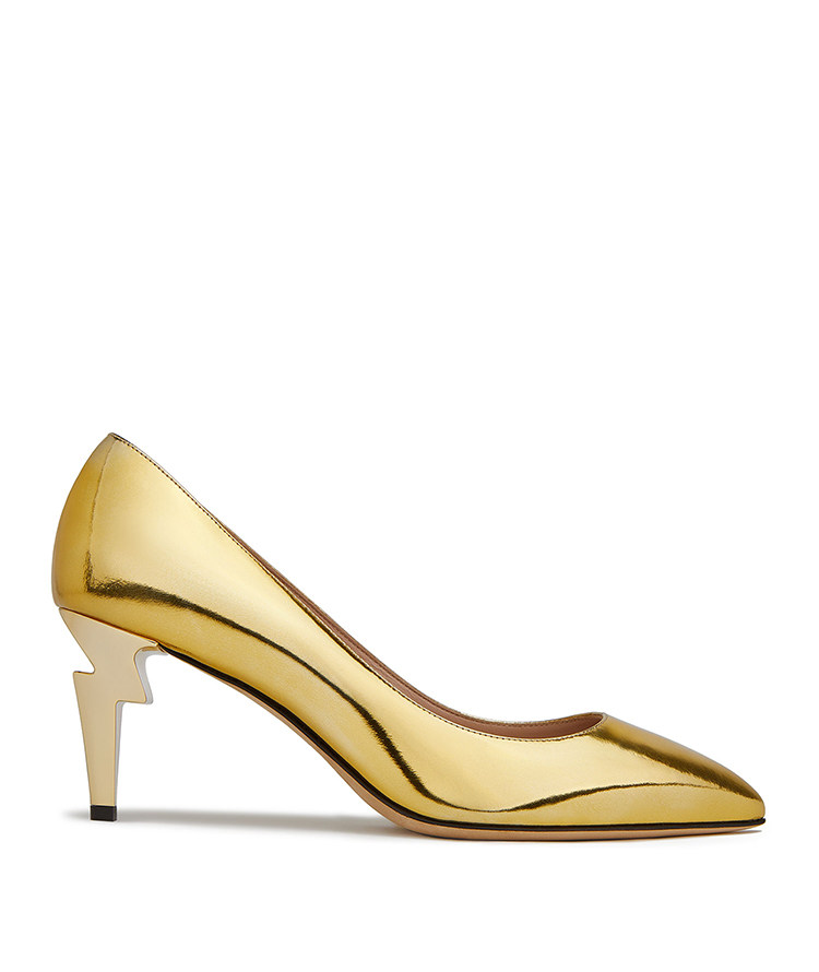 Эта зеркальная золотая кожа сочетается с G -образными каблуками в пятках, показывая стиль личности.Кожаные подошвы украшены логотипом бренда.