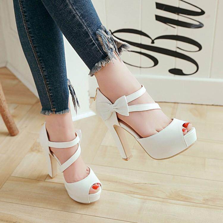 Босоножки, летние белые сексуальные туфли на высоком каблуке с бантиком, 2020