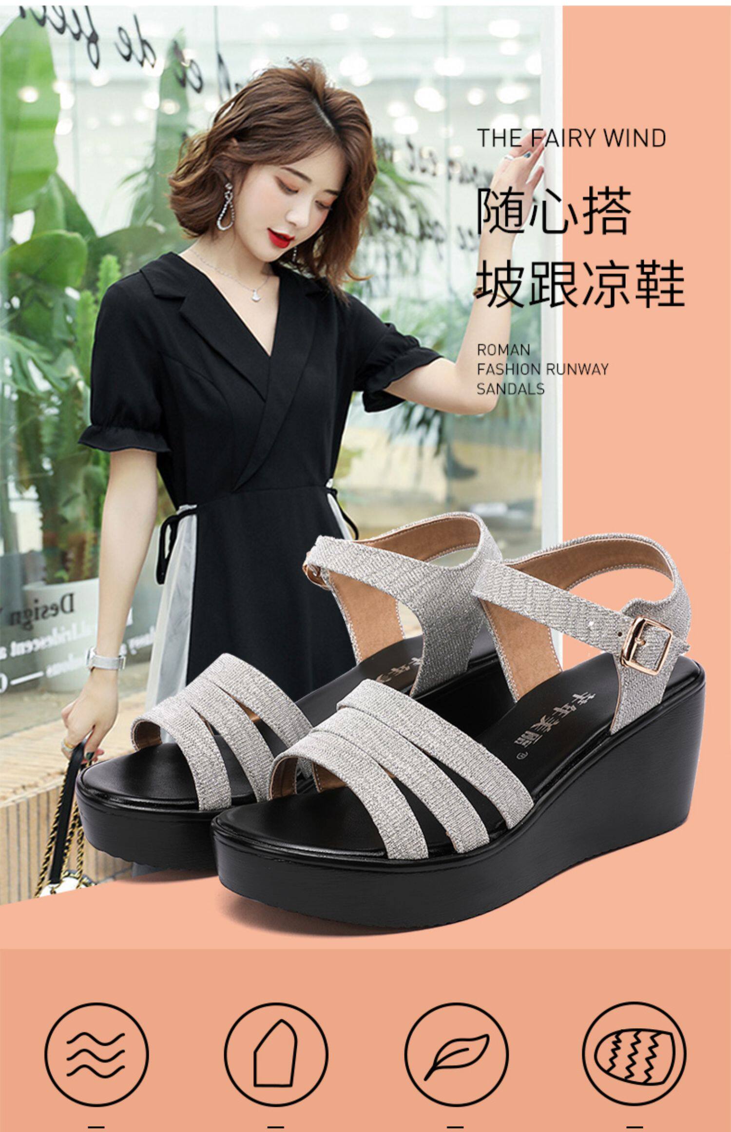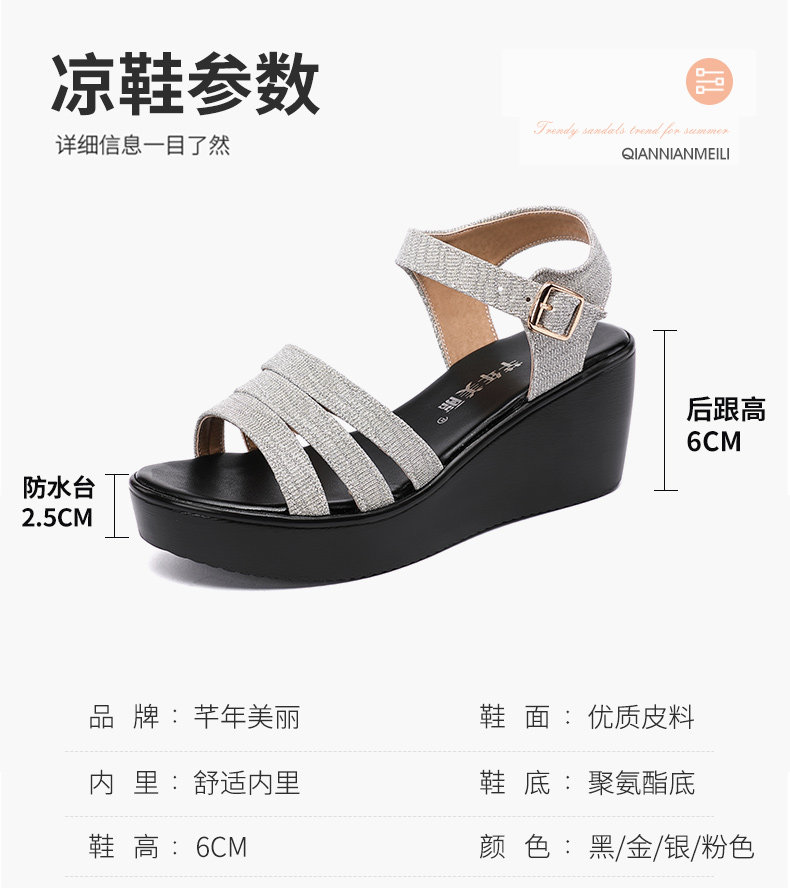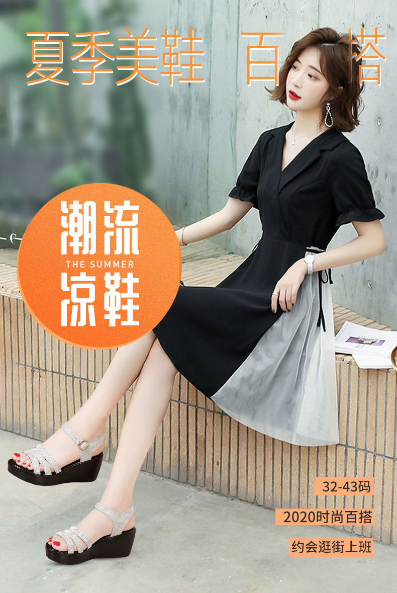 Сандалии, водостойкая обувь на платформе, универсальные блестки для ногтей, 2023, большой размер, 40