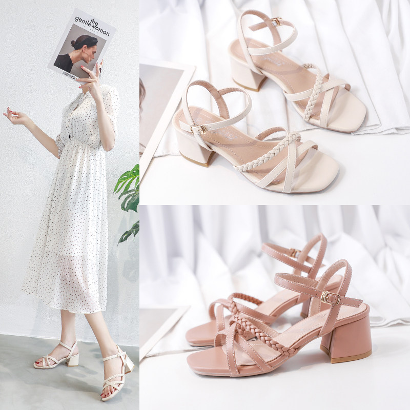 Женский 2021 Новый летний модный стиль в стиле с одной полосой средней каблуки.