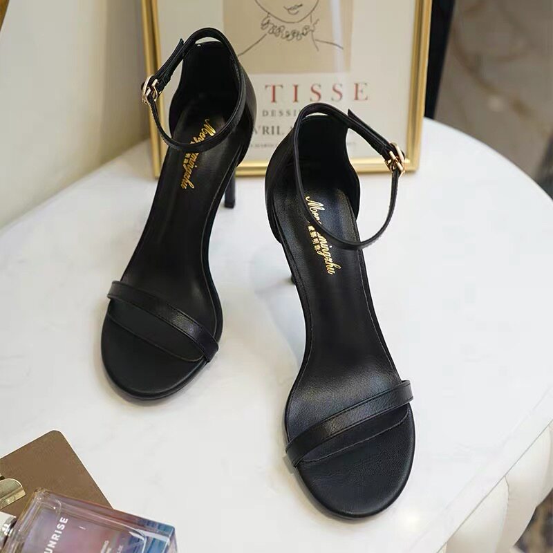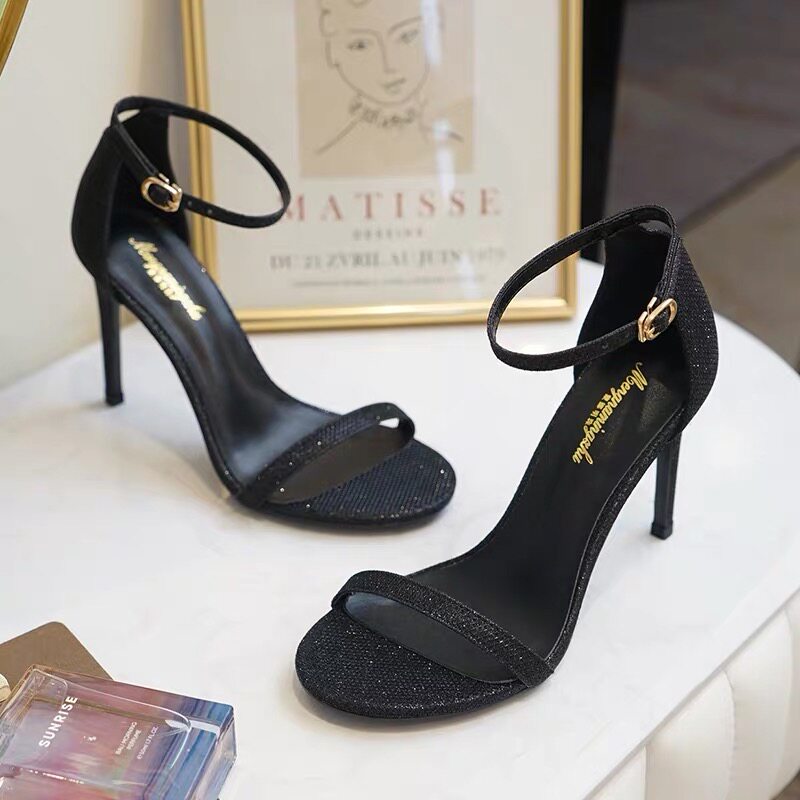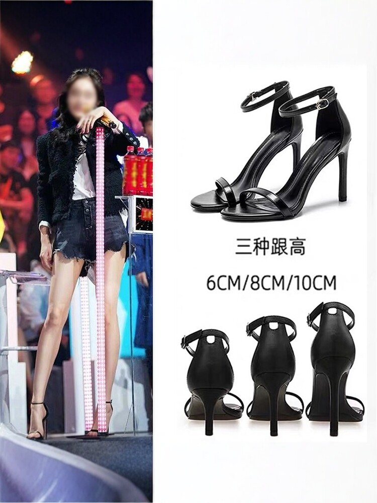 Летние сандалии, универсальная черная сексуальная обувь на высоком каблуке