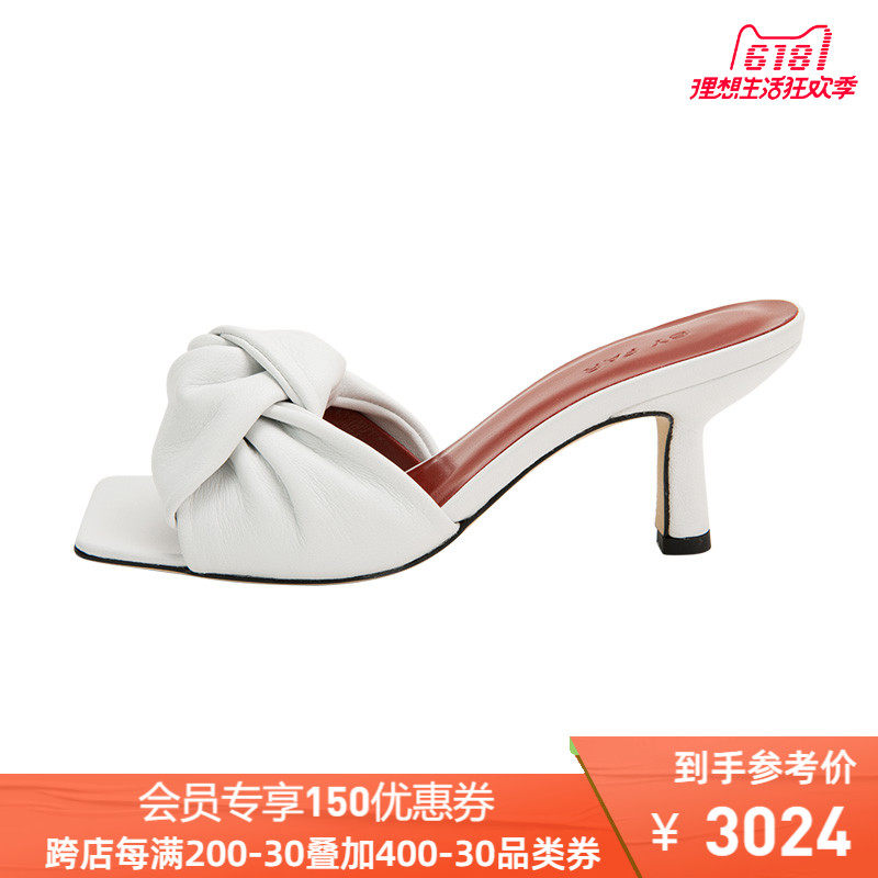 Женские тапочки BY FAR Lana series из белой коровьей кожи в классическом стиле с пряжкой на высоком каблуке