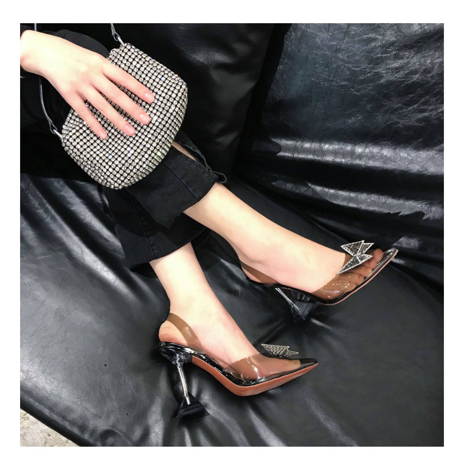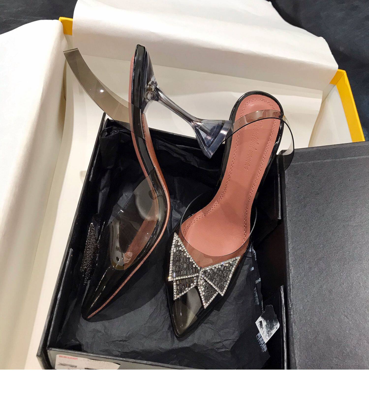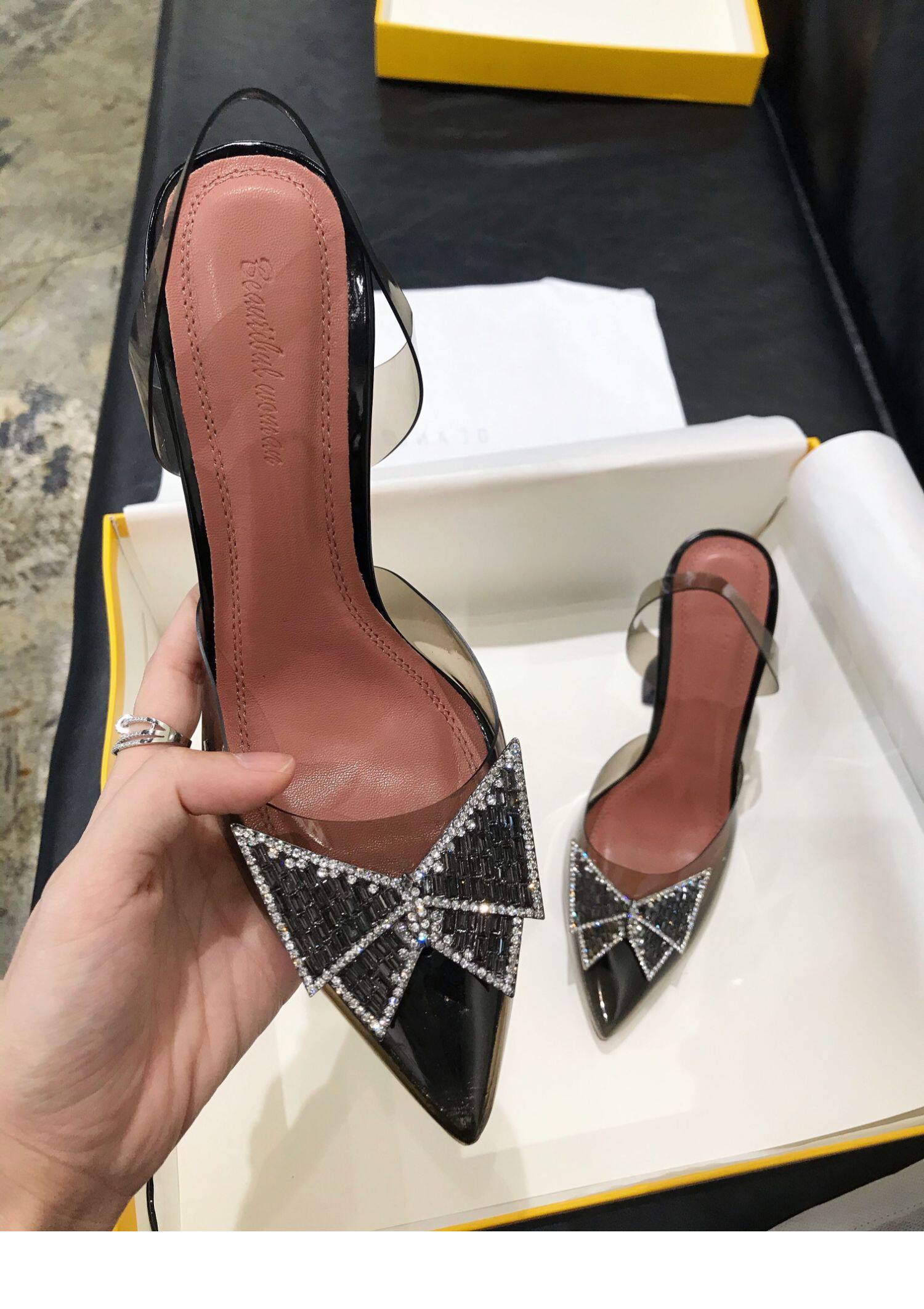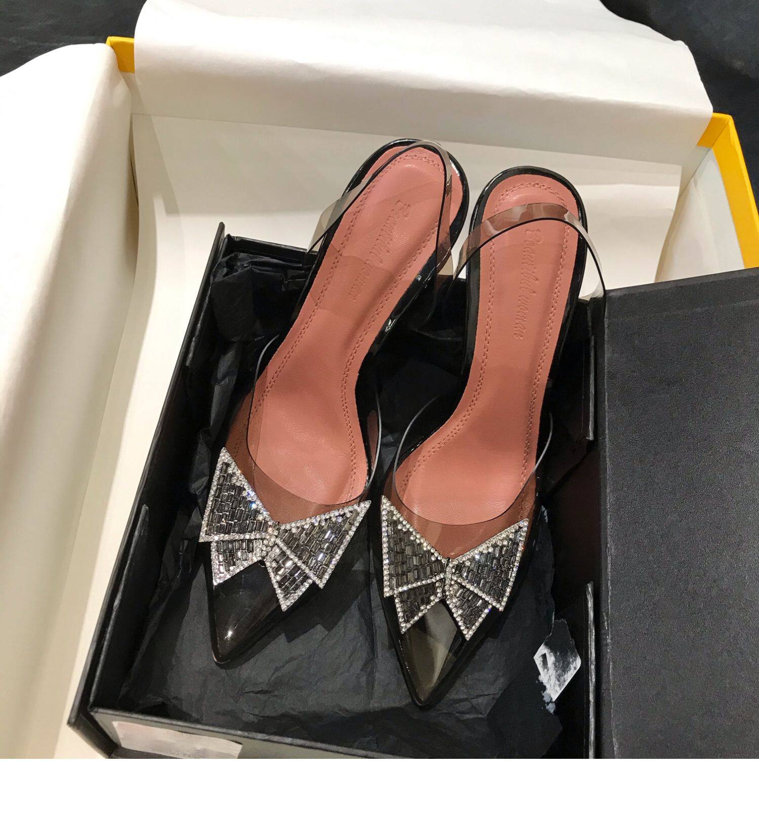 Летняя обувь с бантиком на высоком каблуке с заостренным носом, сумка для обуви, сандалии