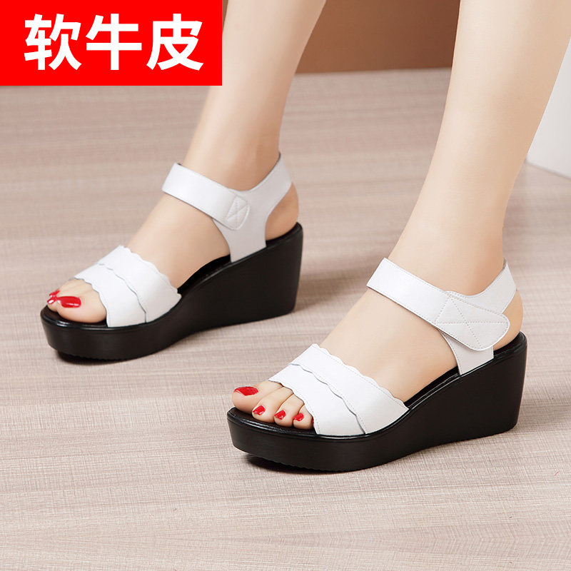Сандалии, летняя универсальная обувь на платформе, из натуральной кожи, большой размер