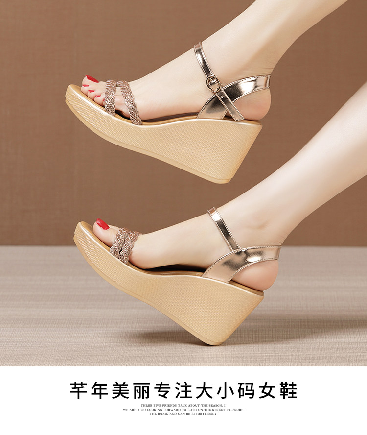 Золотые сандалии на высоком каблуке, летняя обувь на платформе, большой размер